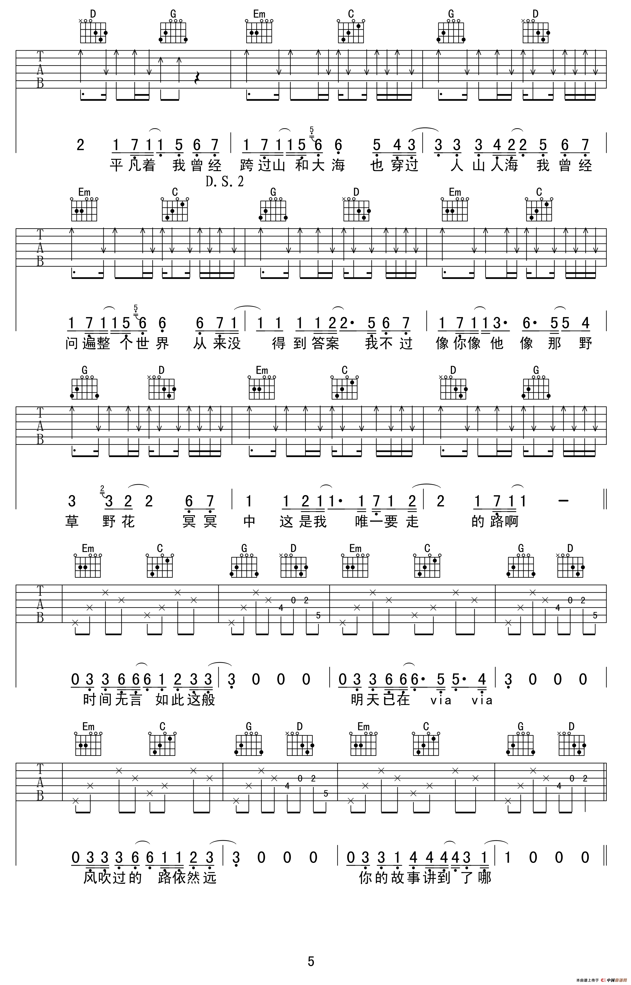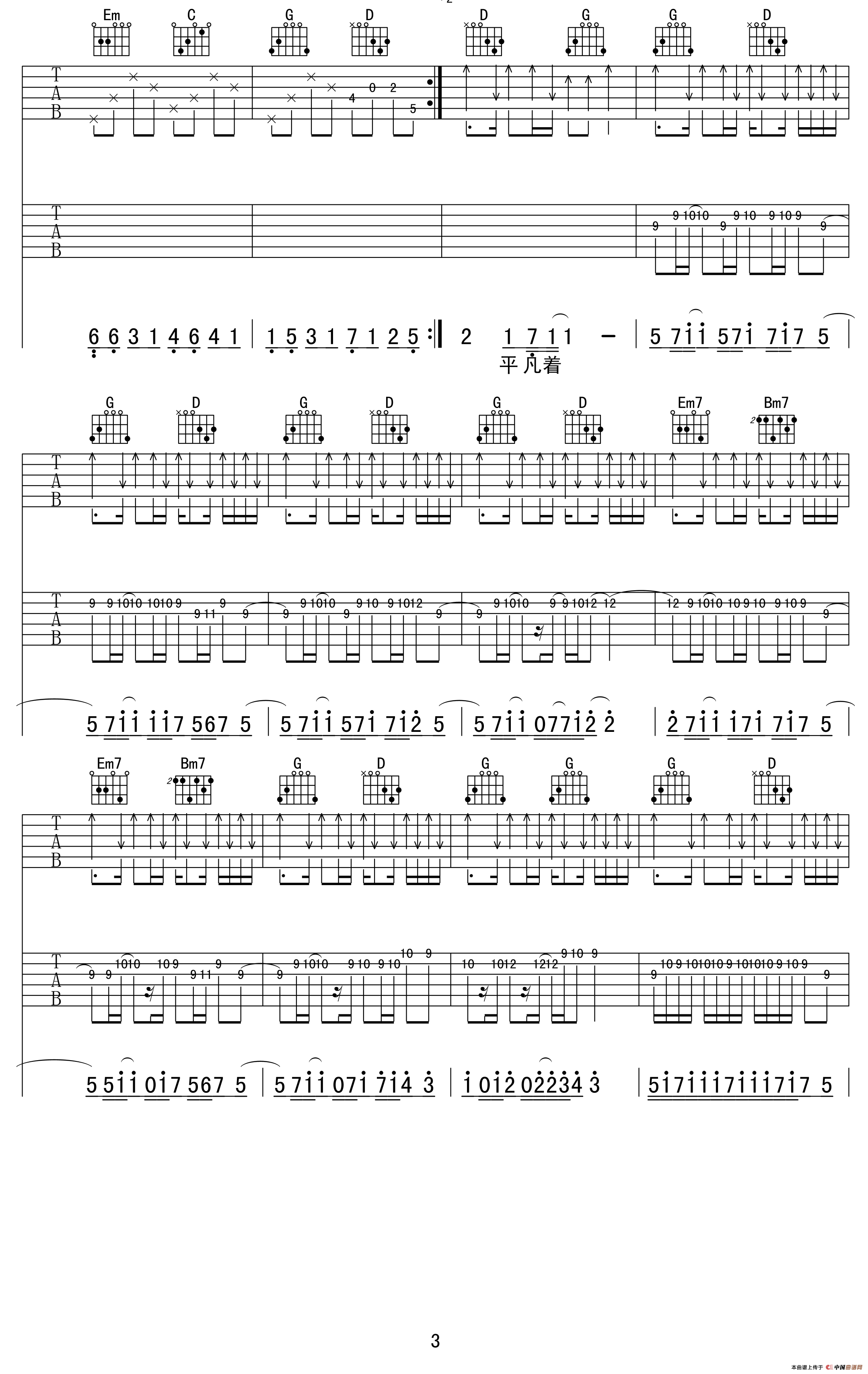平凡之路(吉他六线谱)