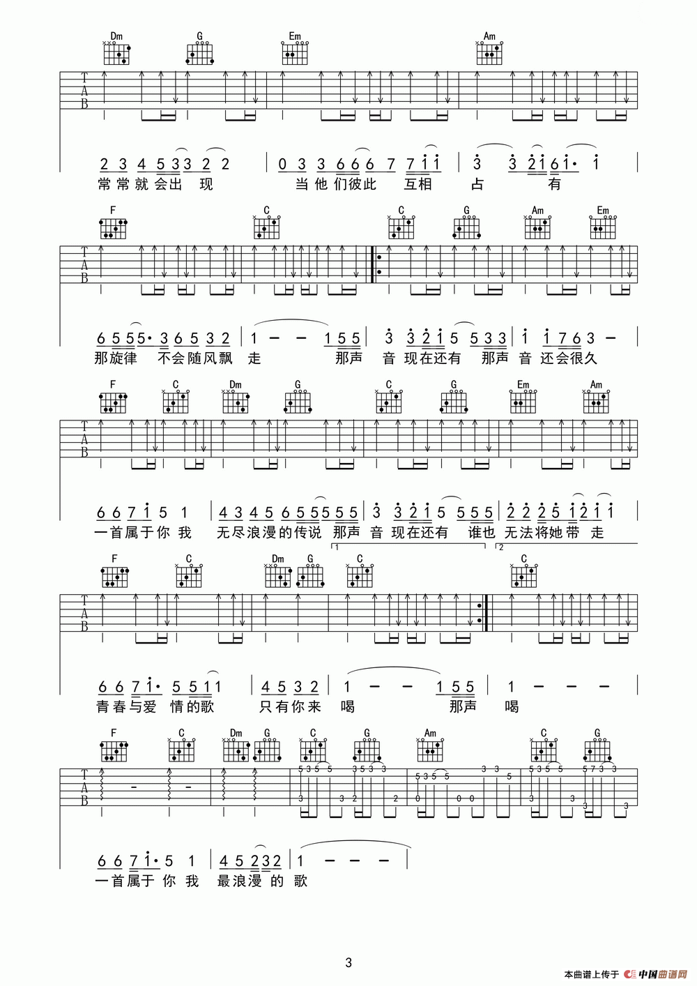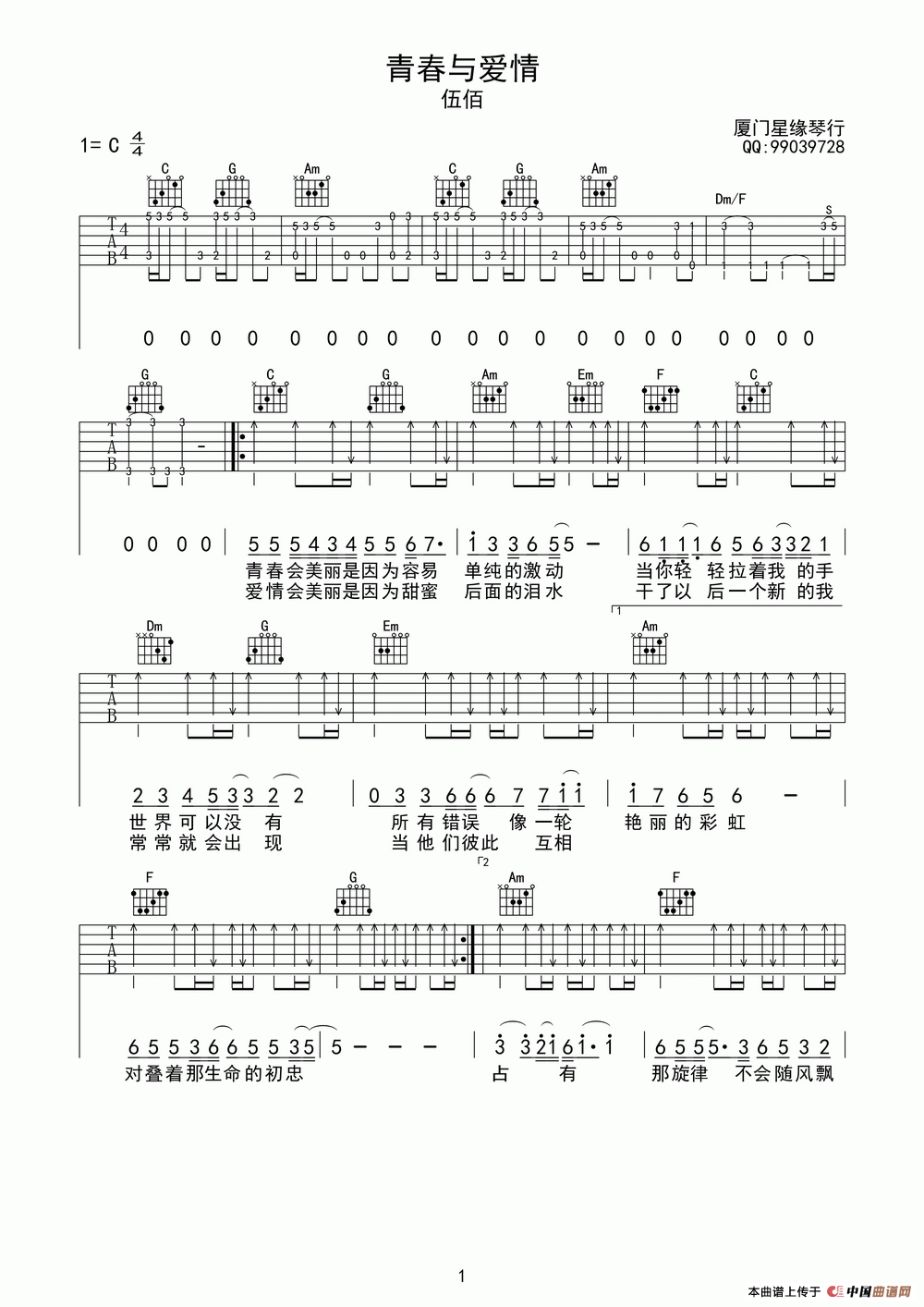 青春与爱情相关五线谱
