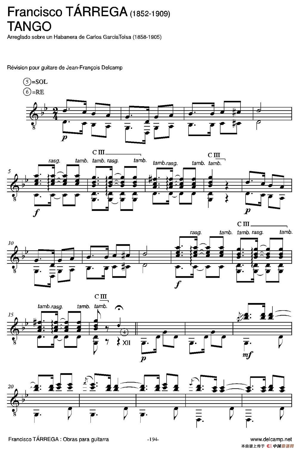 TANGO(Arreglado sobre un Habanera de Carlos Garcia Tolsa)(古典吉他)相关五线谱