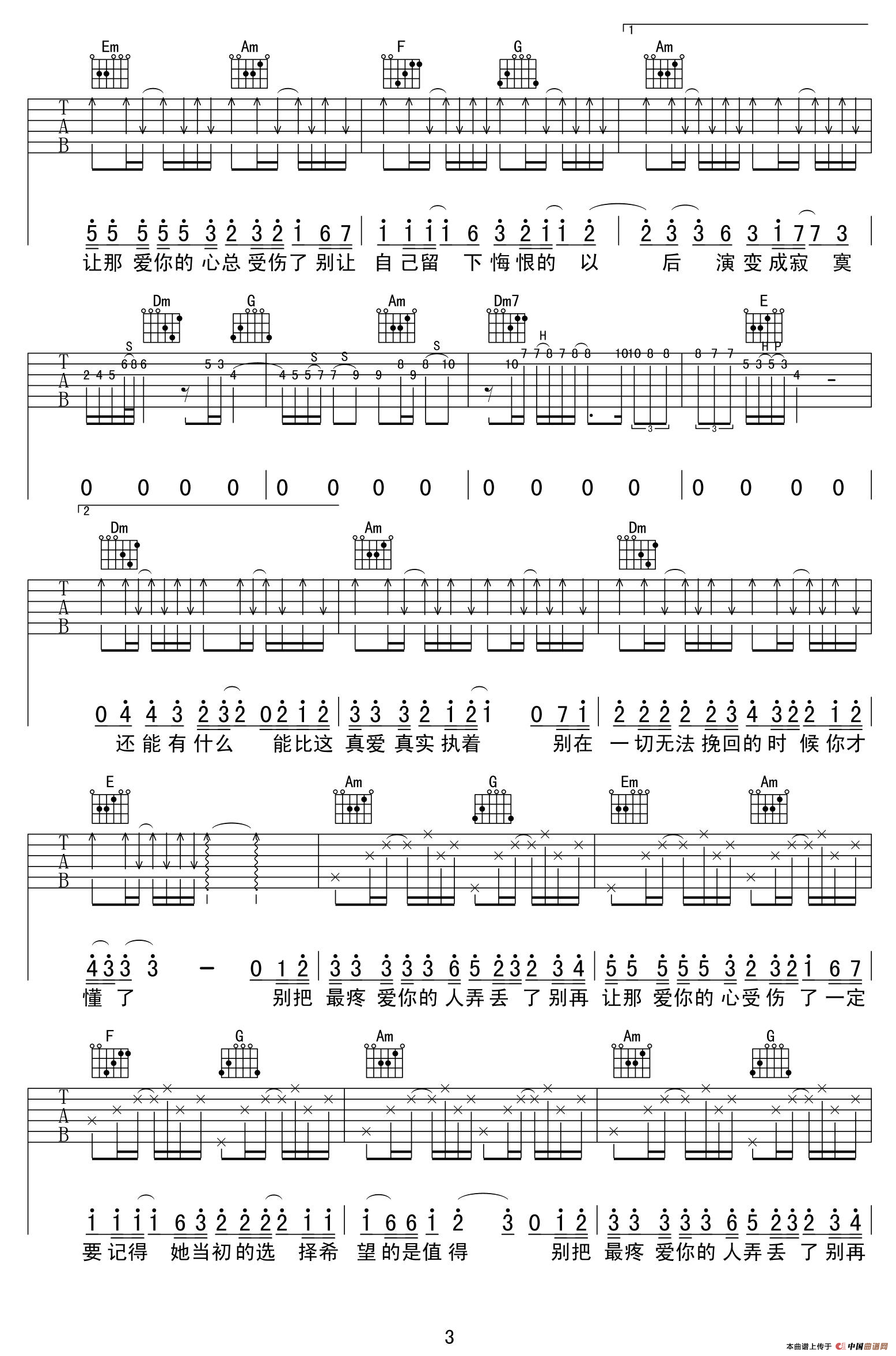 别把疼你的人弄丢了相关五线谱