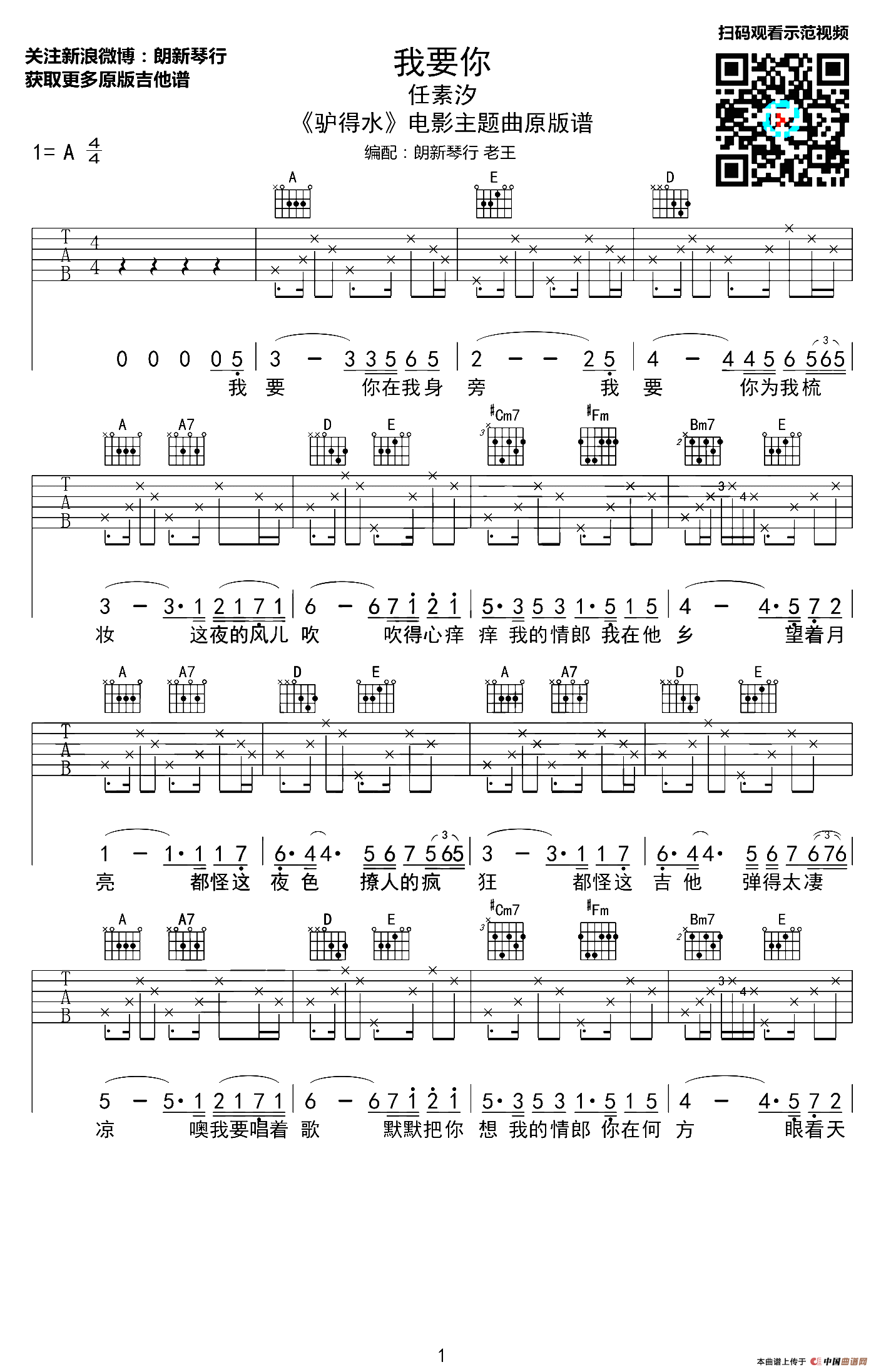 我要你(吉他六线谱)