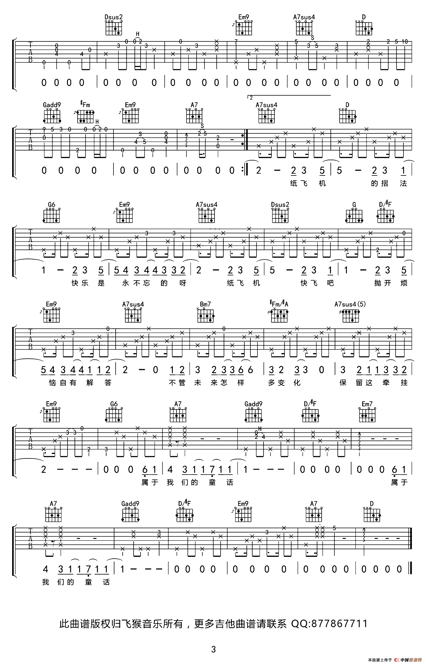 纸飞机(小寒词 黄韵仁曲)相关五线谱