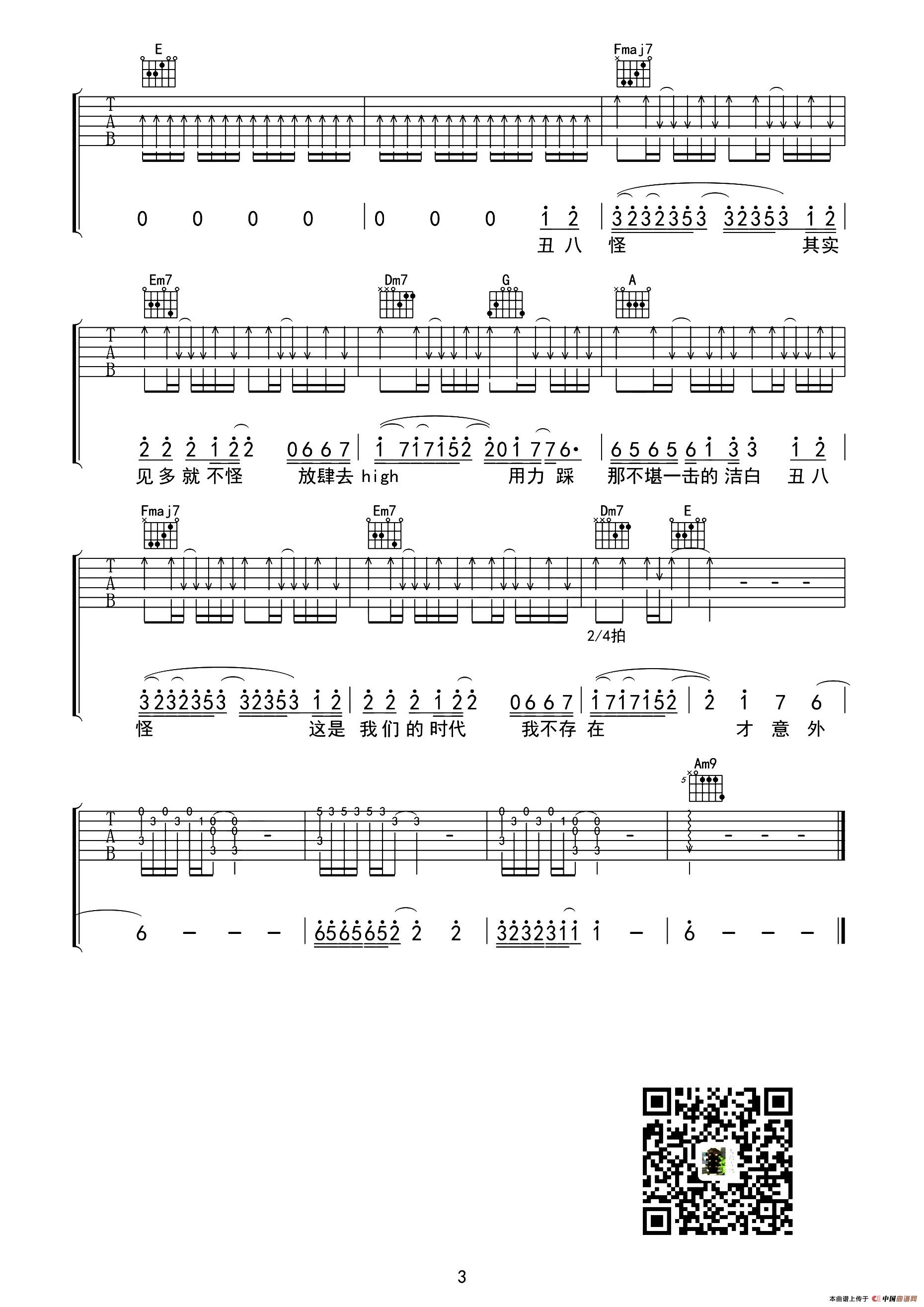 丑八怪(天韵吉他编配版)相关五线谱