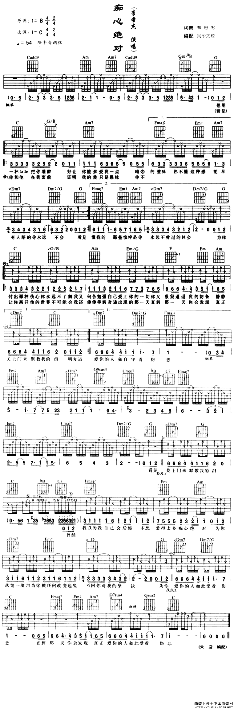 痴心绝对相关五线谱