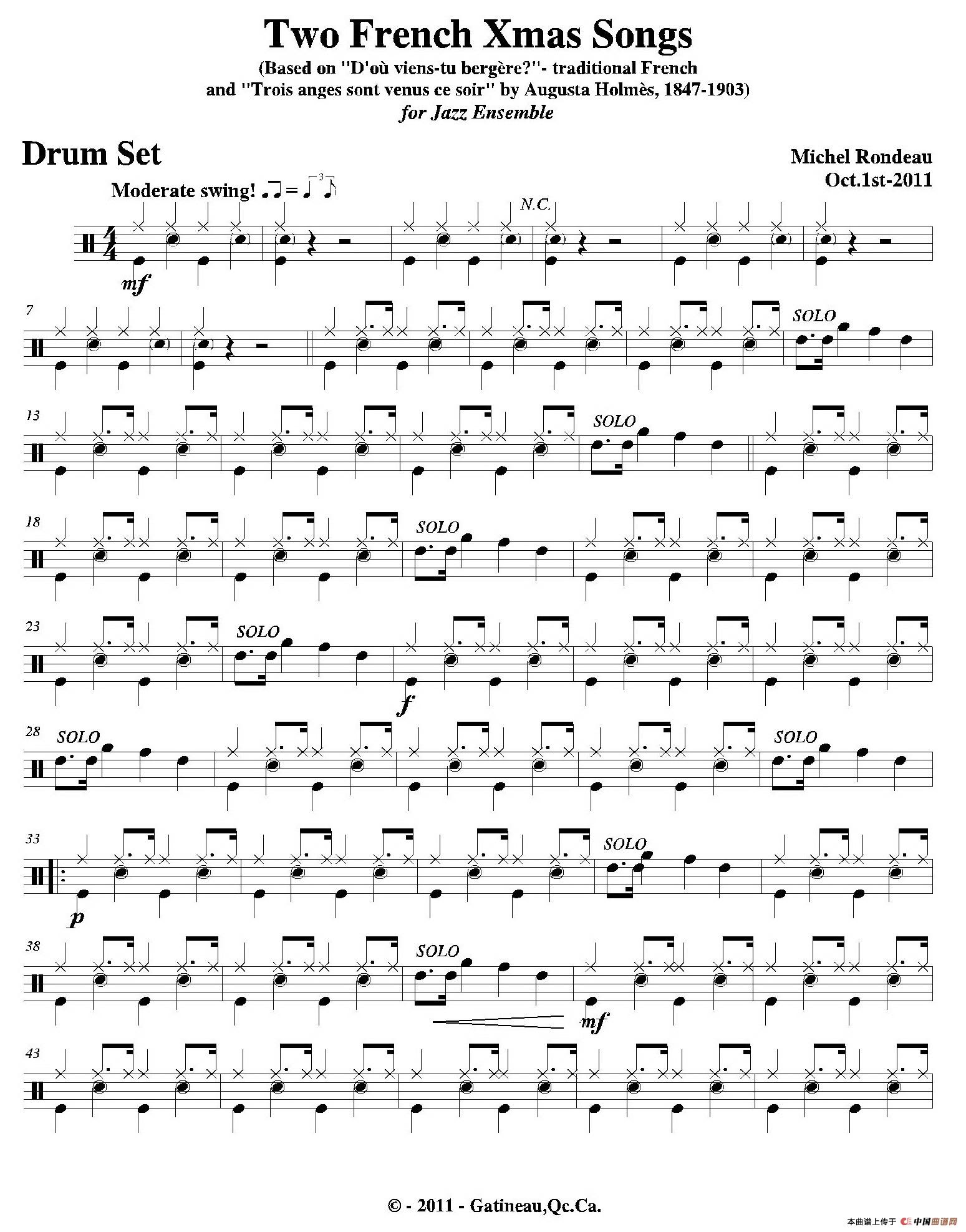 Two French Xmas Songs(爵士鼓分谱)相关五线谱