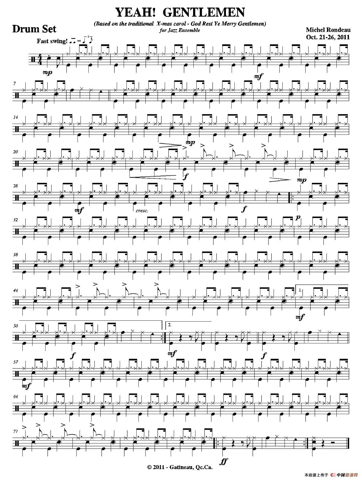 YEAH! GENTLEMEN(爵士鼓分谱)相关五线谱