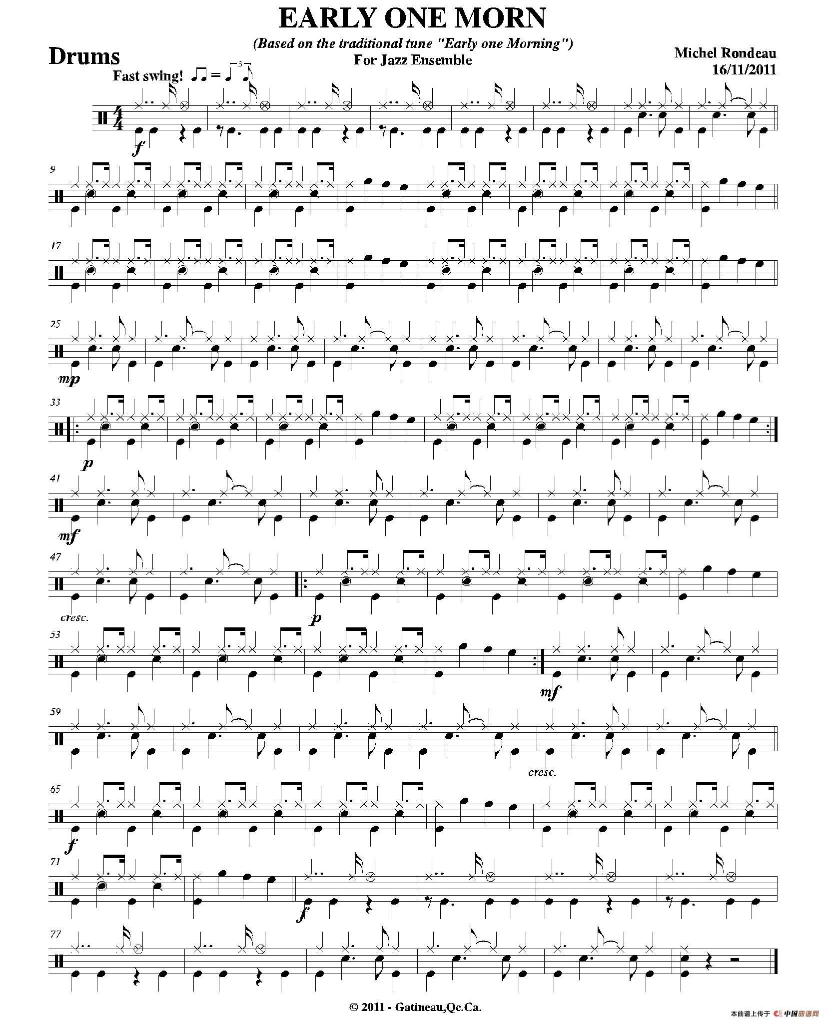 EARLY ONE MORN(爵士鼓分谱)相关五线谱