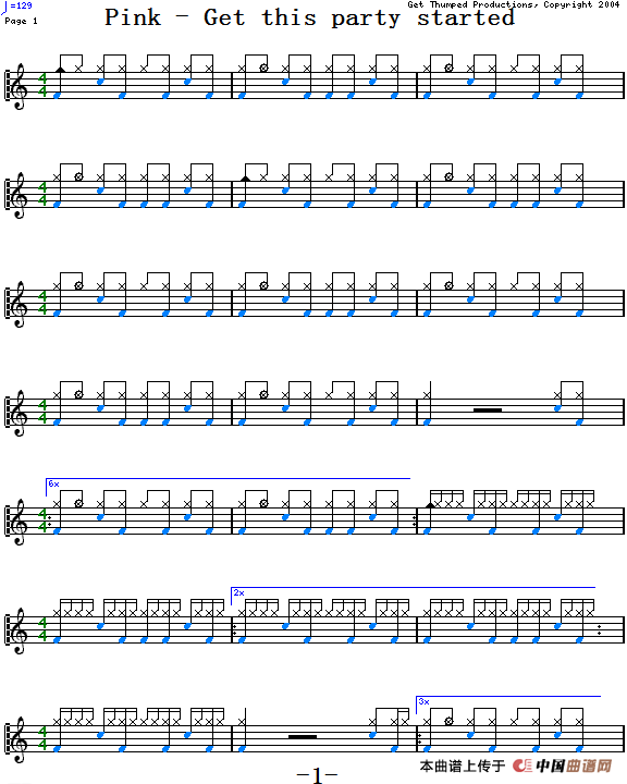 爵士鼓谱:Pink - Get this party started相关五线谱
