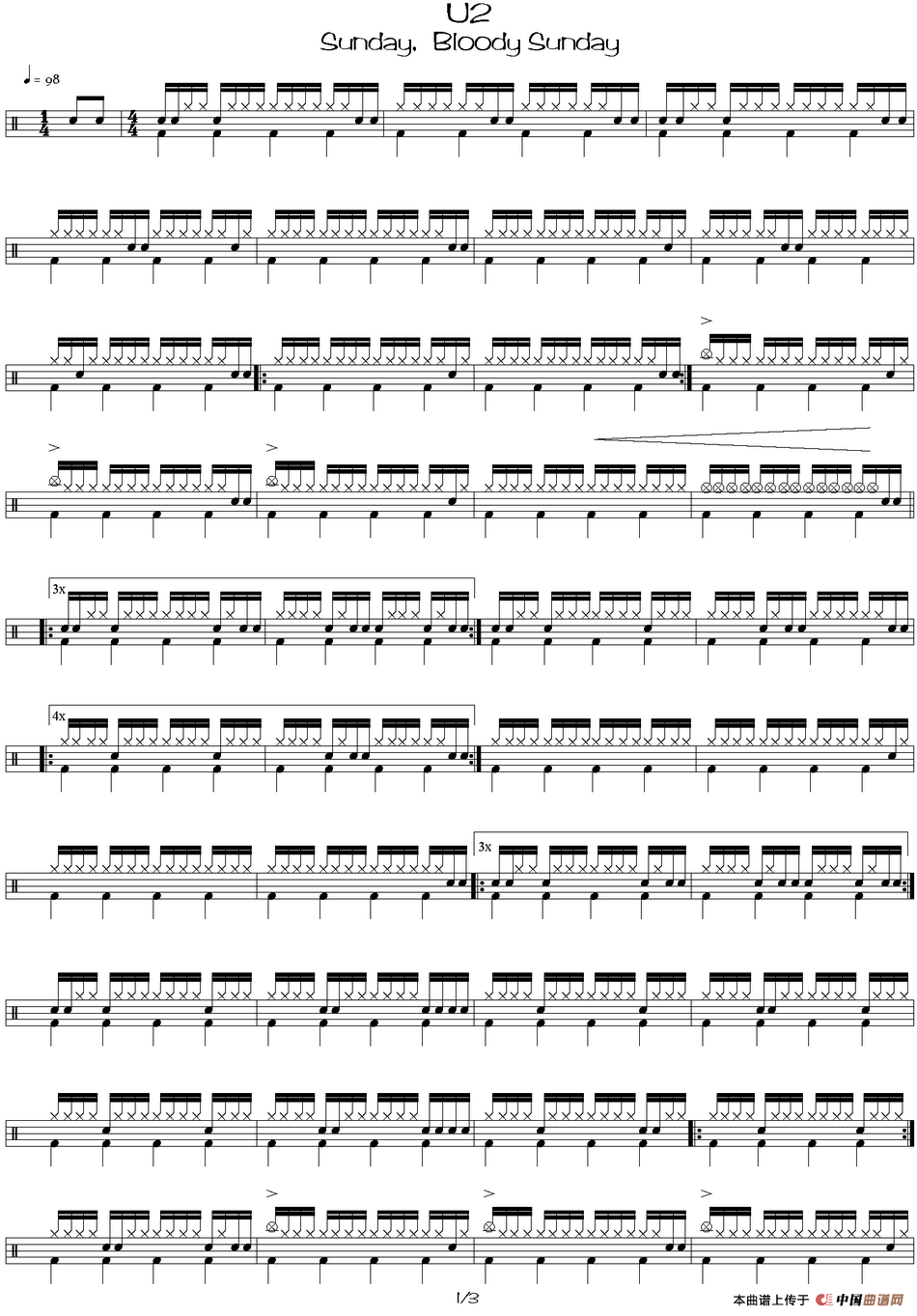 爵士鼓谱:U2 - Sunday bloody sunday