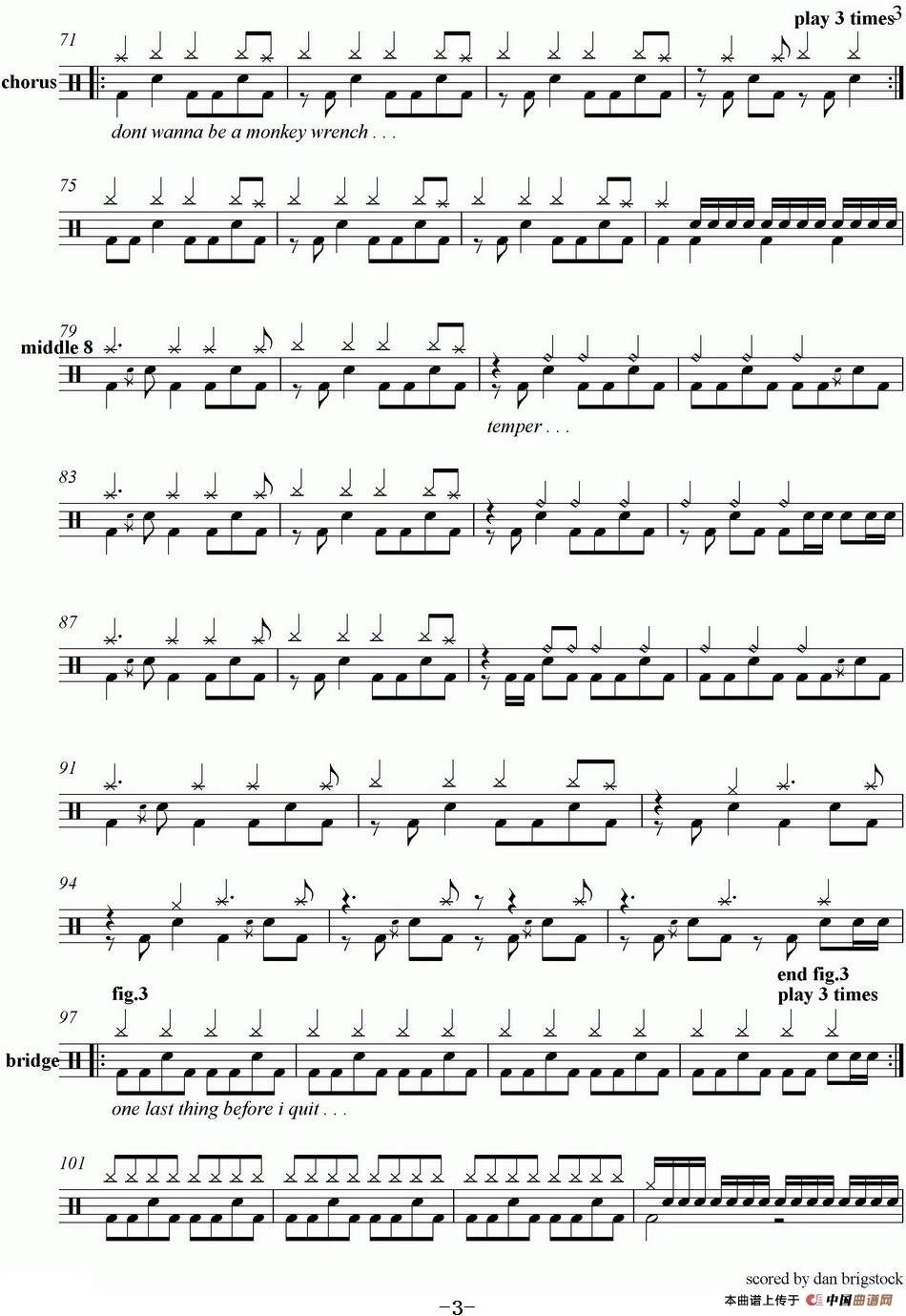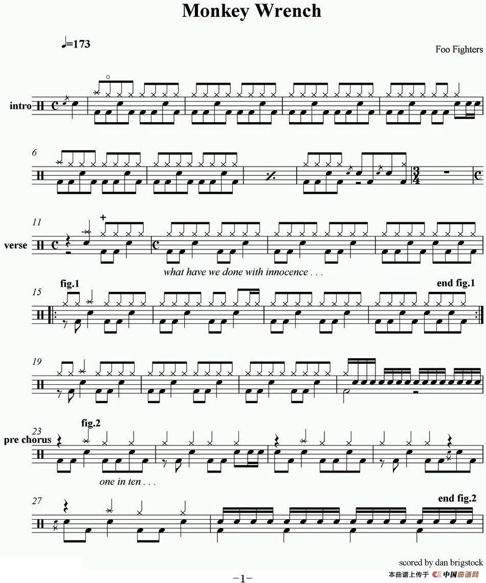 爵士鼓谱:Foo Fighters-Monkey wrench