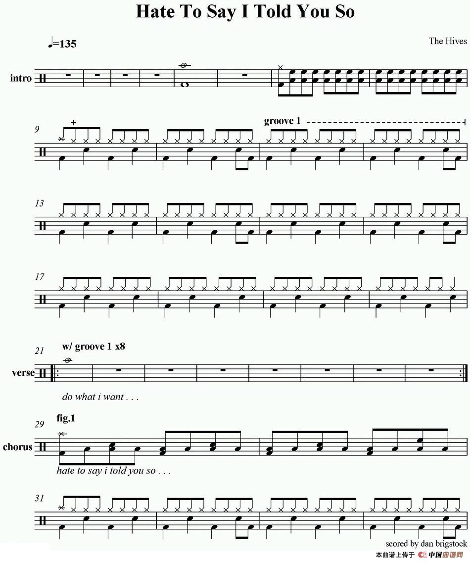 爵士鼓谱:Hives - Hate to say I told you so相关五线谱