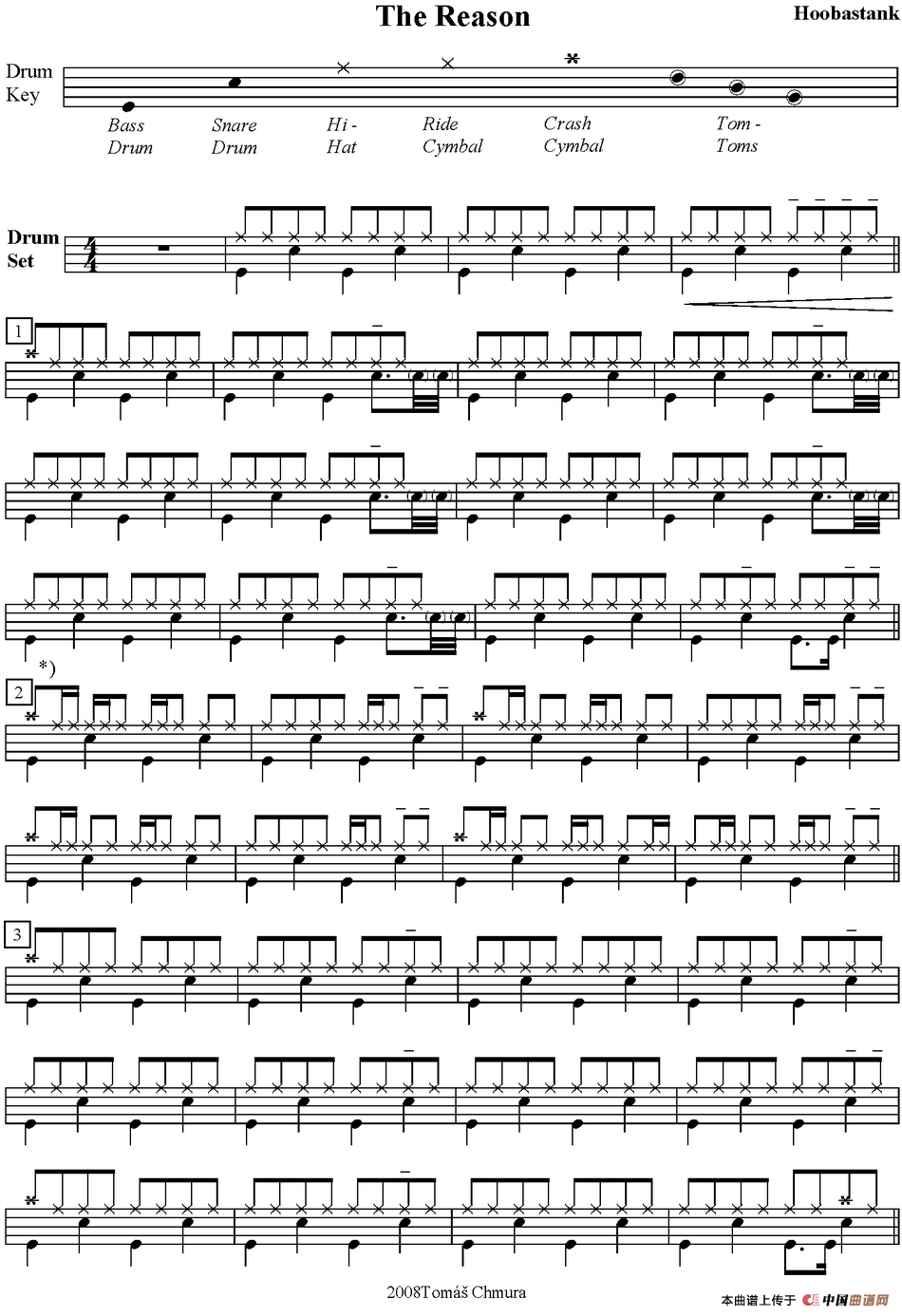 爵士鼓谱:Hoobastank - The reason相关五线谱
