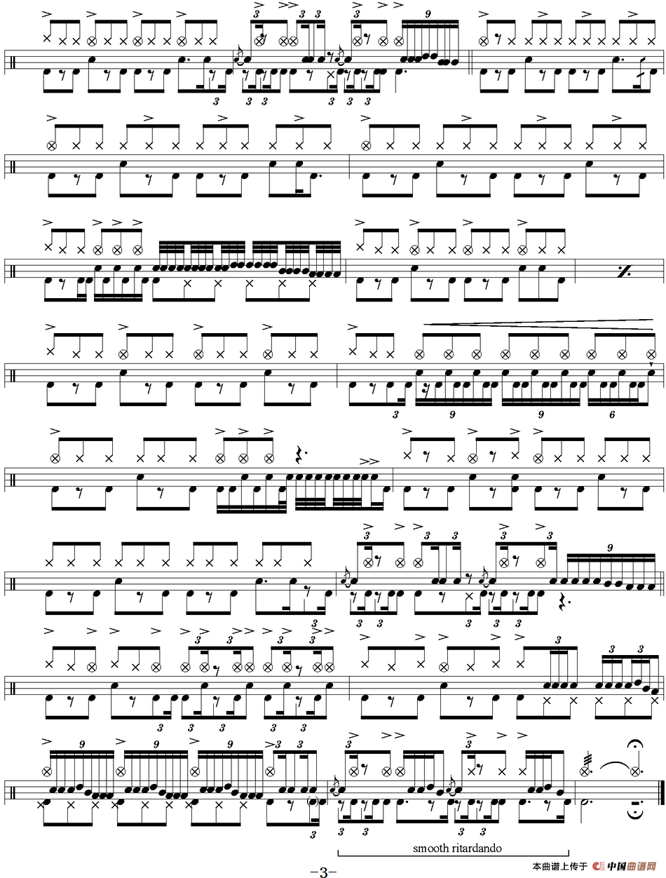爵士鼓谱:Led Zeppelin - Since I've been loving you相关五线谱