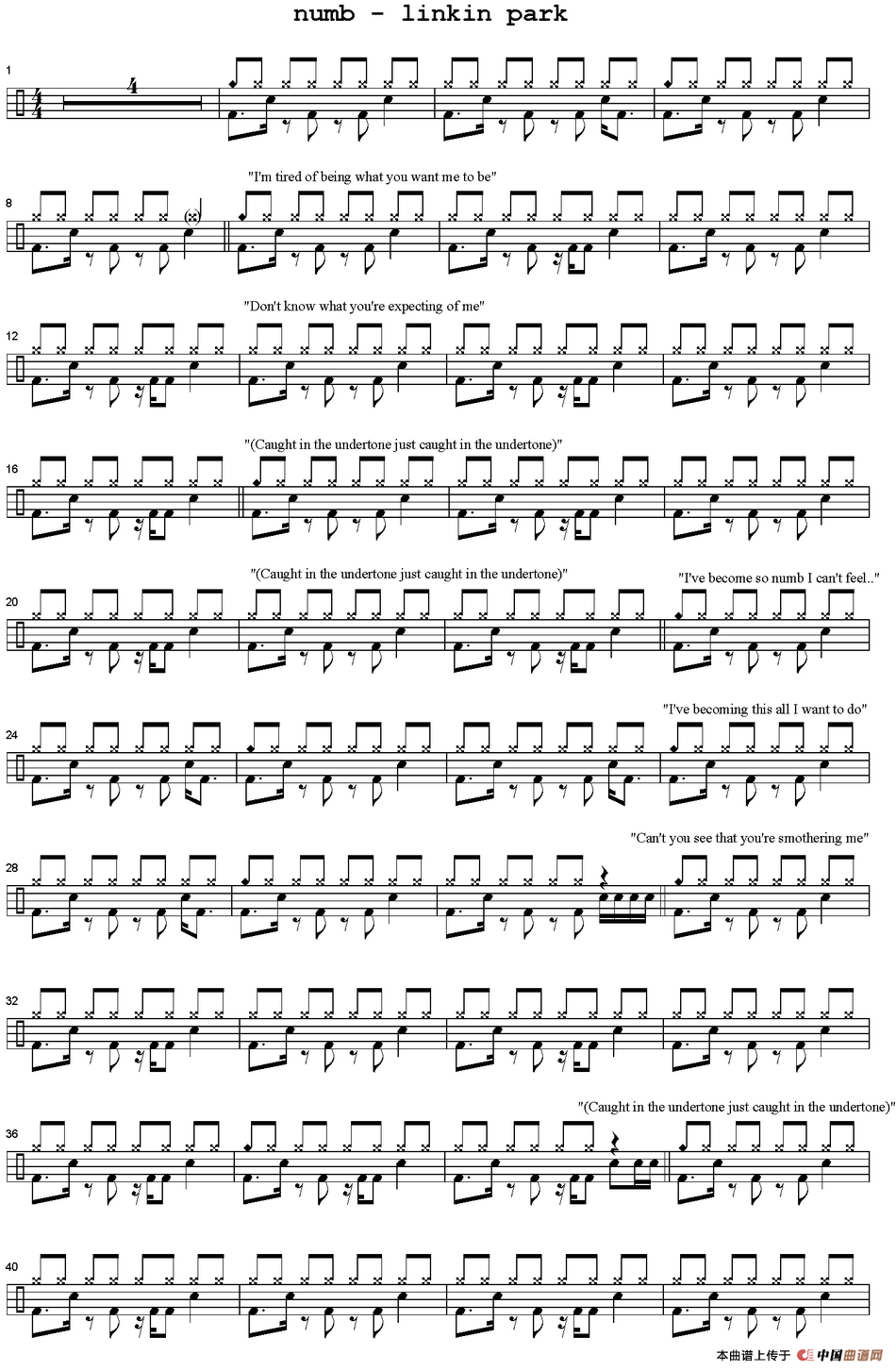 爵士鼓谱:Linkin Park - Numb相关五线谱