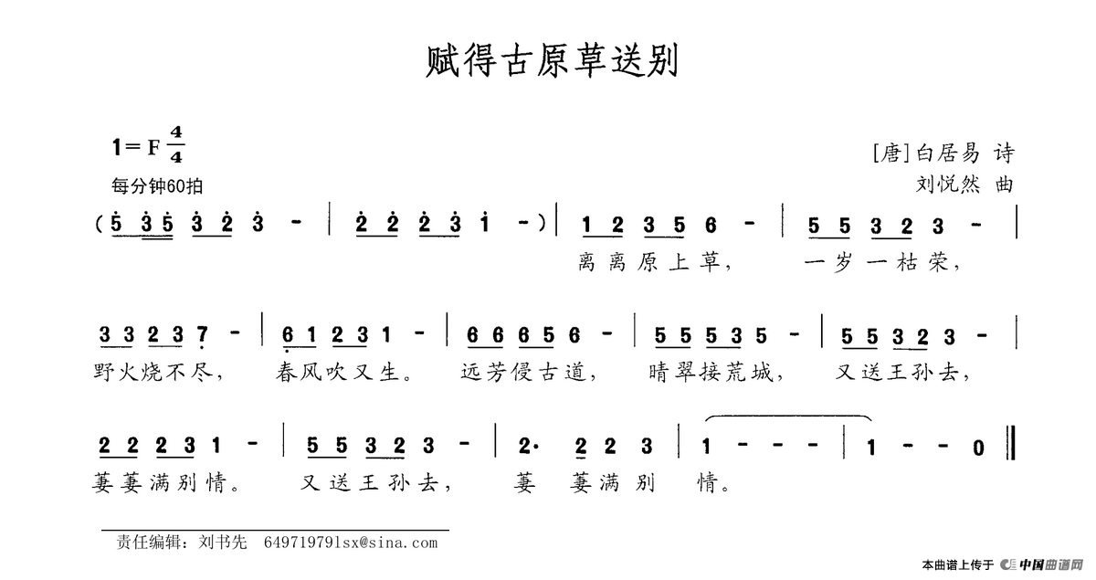 赋得古原草送别([唐]白居易词 刘悦然曲)相关五线谱