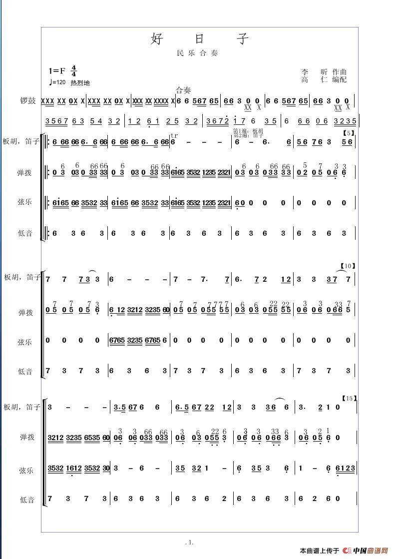 好日子(器乐合奏、高、次中音唢呐曲谱)