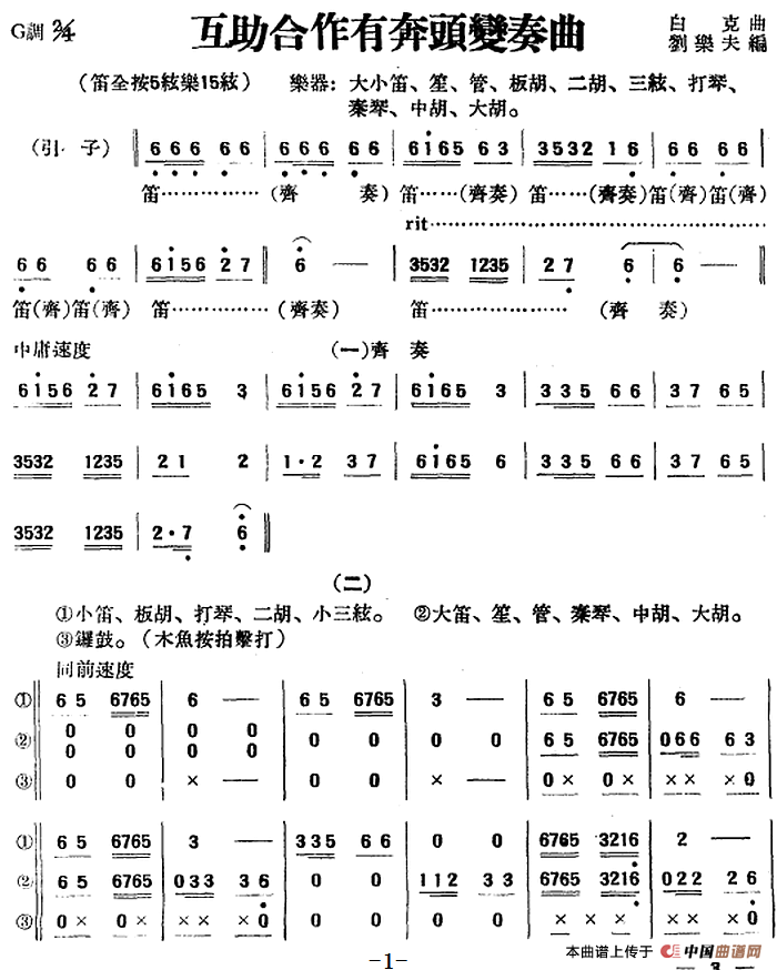 互助合作有奔头变奏曲(民乐合奏)相关五线谱