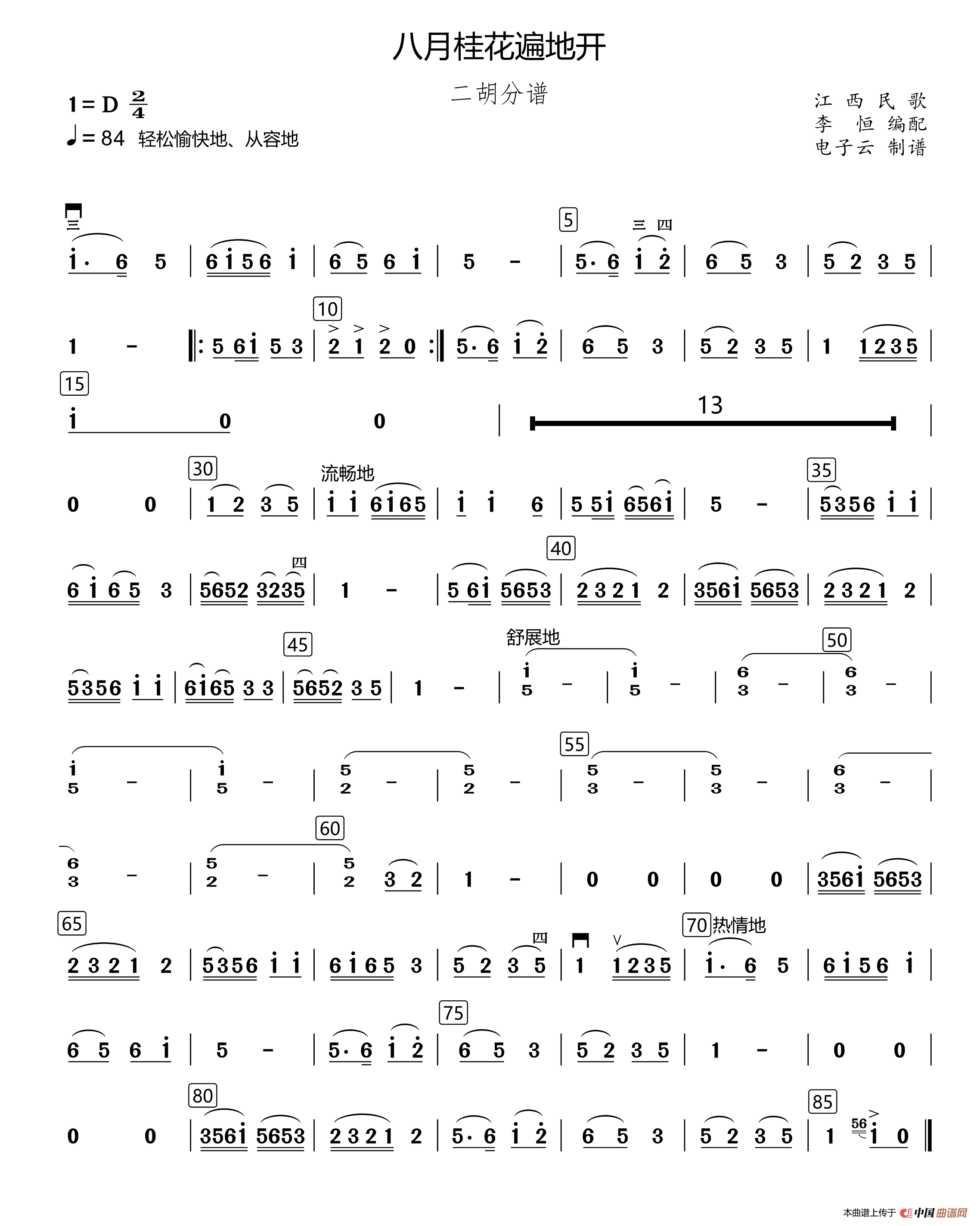 江西民歌、李恒编配曲谱推荐八月桂花遍地开(民乐合奏大提琴分谱、李恒编配版)八月桂花遍地开(民乐合奏笙分谱、李恒编配版)八月桂花遍地开(民乐合奏笛子分谱、李恒编配版)八月桂花遍地开(民乐合奏扬琴分谱、李恒编配版)八月桂花遍地开(民乐合奏琵琶分谱、李恒编配版)八月桂花遍地开(民乐合奏中阮分谱、李恒编配版)