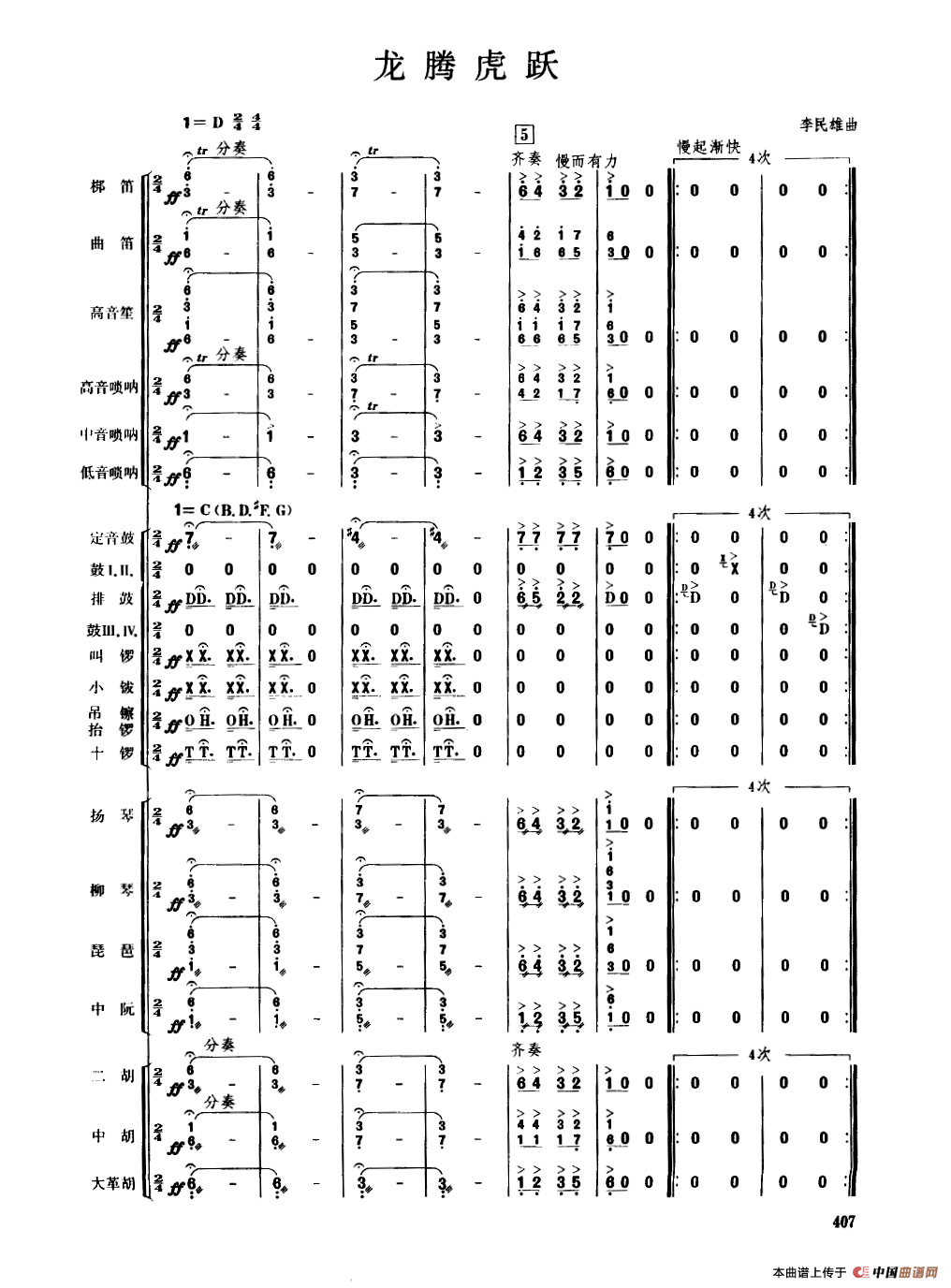 龙腾虎跃(民乐合奏总谱)相关五线谱