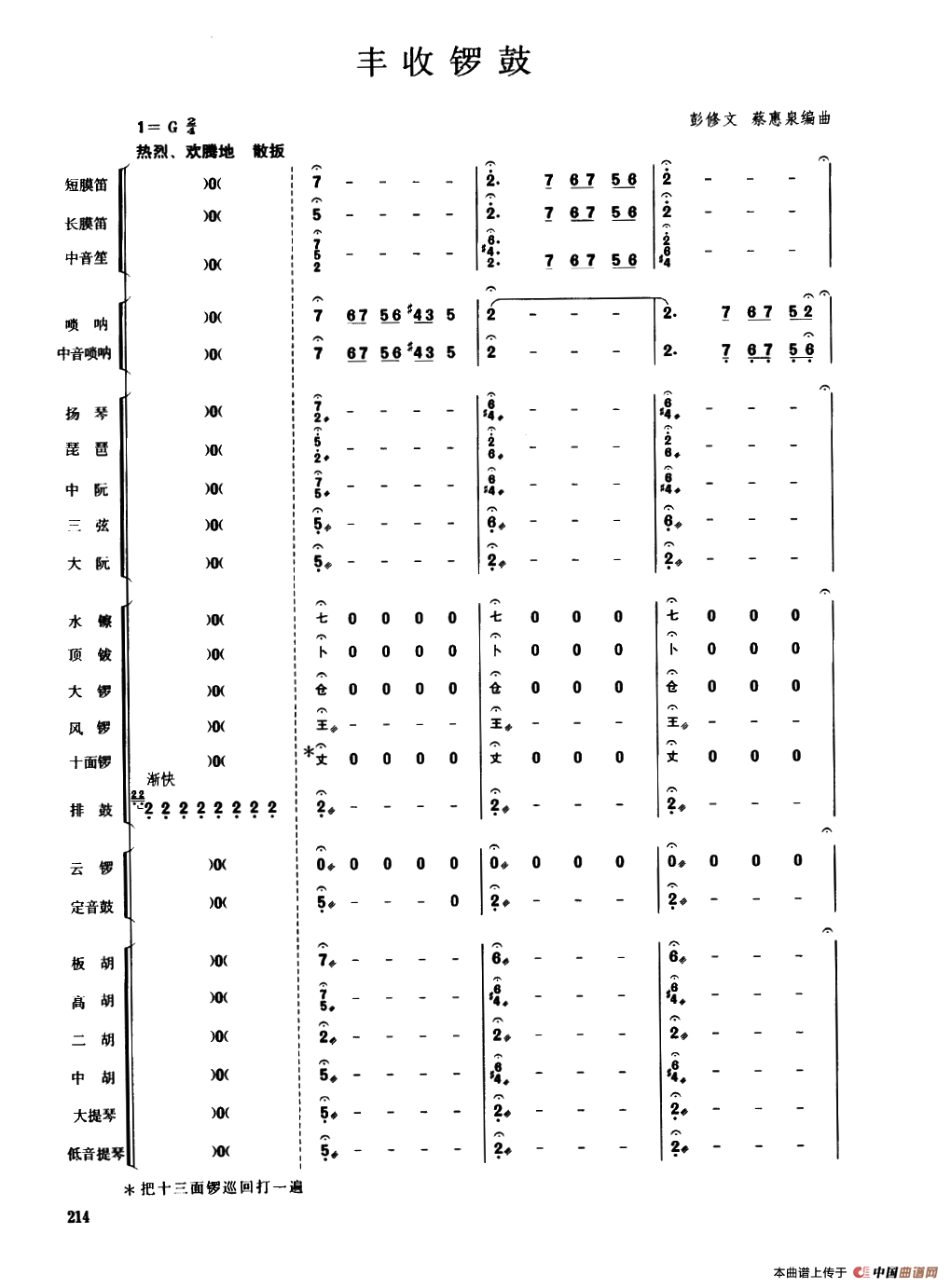 丰收锣鼓(民乐合奏总谱)相关五线谱