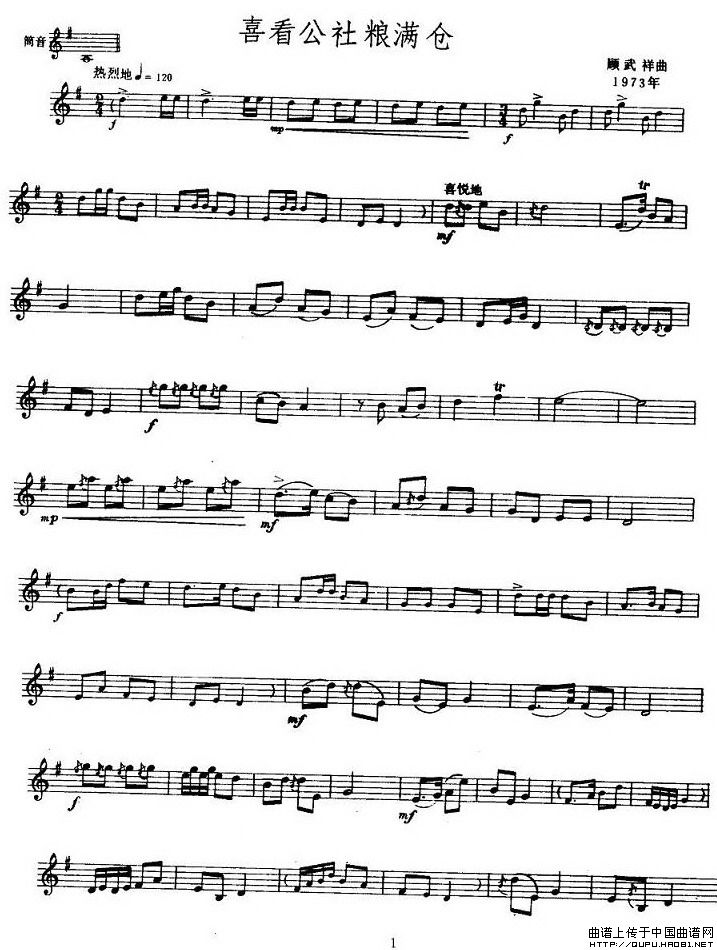 喜看公社粮满仓(唢呐谱 [五线谱])相关五线谱