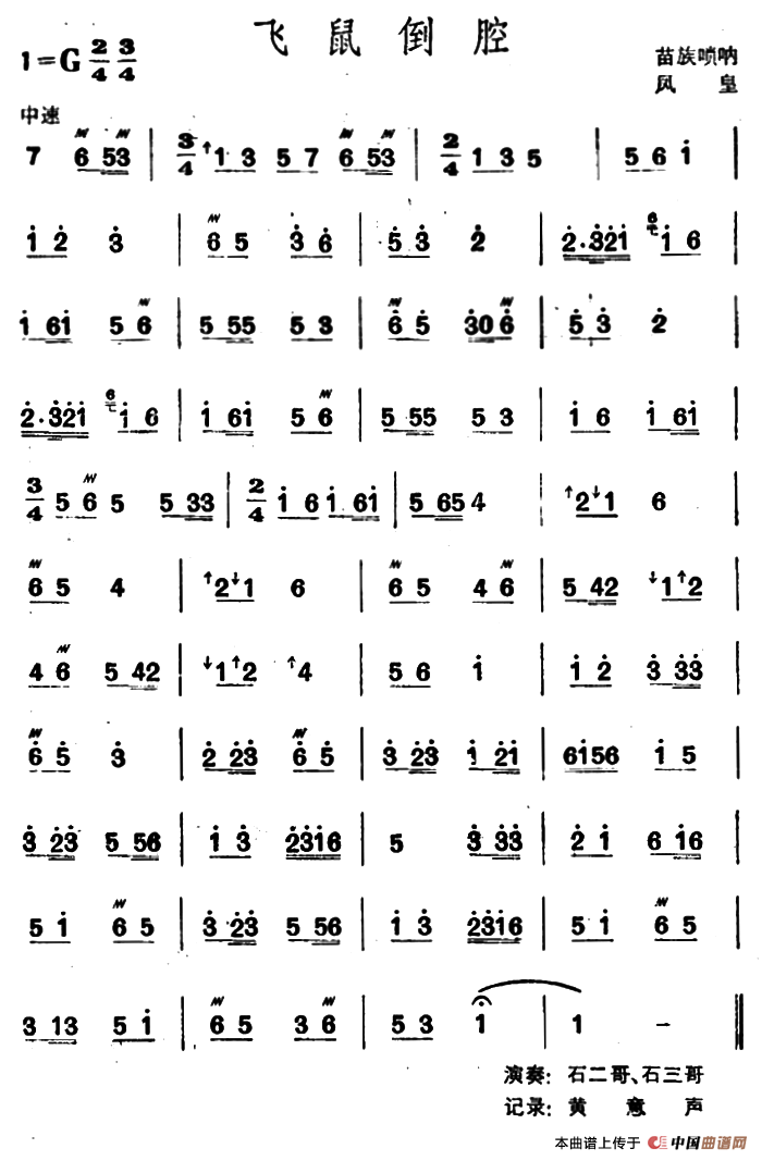 飞鼠倒腔(苗族唢呐)相关五线谱