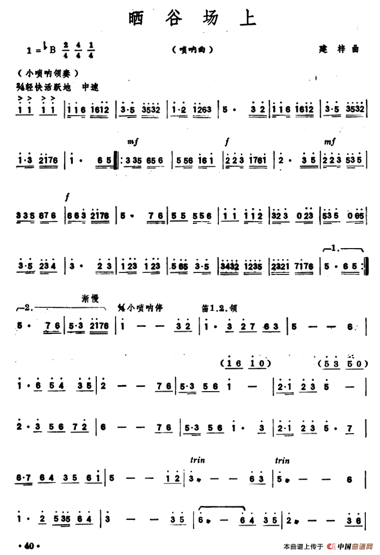 晒谷场上(唢呐)相关五线谱