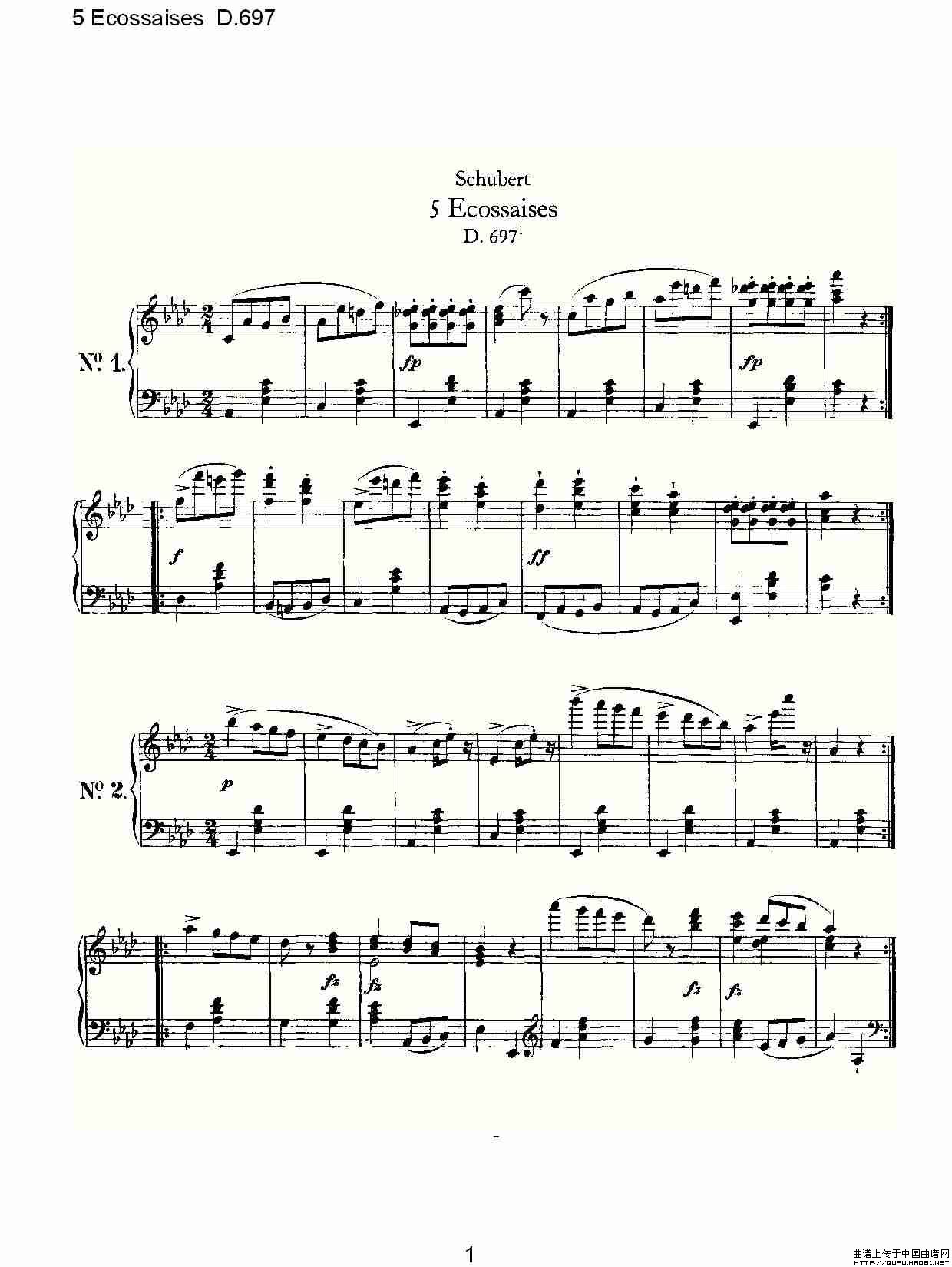 5 Ecossaises D.697相关五线谱