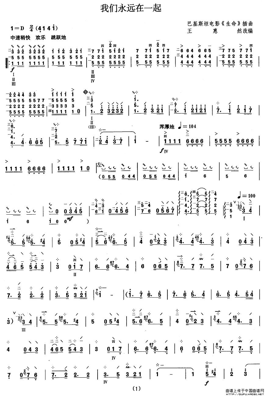 柳琴考级曲目八级:我们永远在一起相关五线谱
