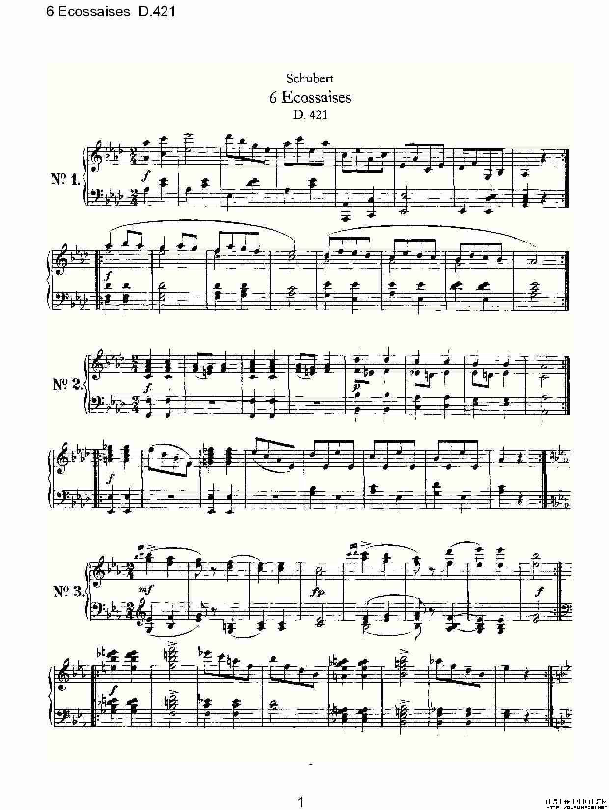 6 Ecossaises D.421相关五线谱