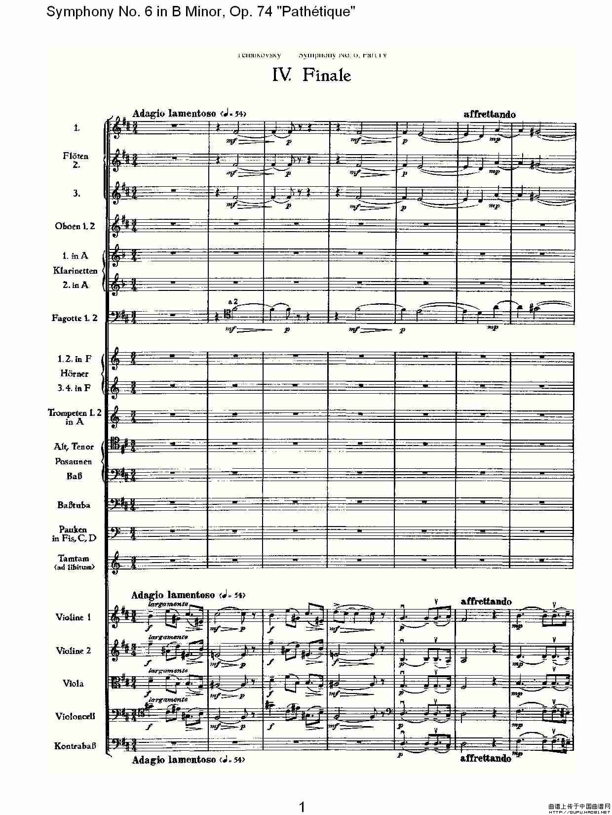B小调第六交响曲,Op.74(第四乐章[一])