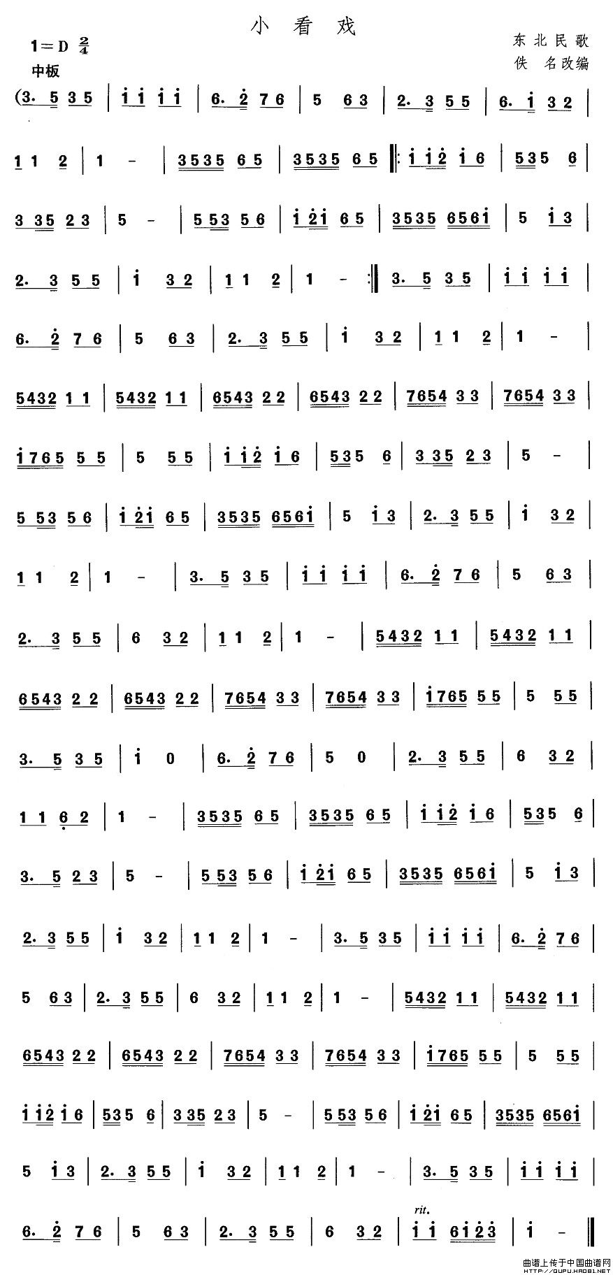 中国民族民间舞曲选(一)东北秧歌:小看)相关五线谱