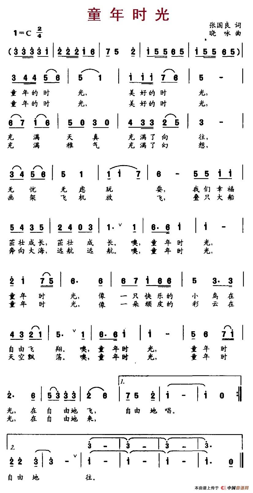 童年时光(张国良词 晓咏曲)相关五线谱