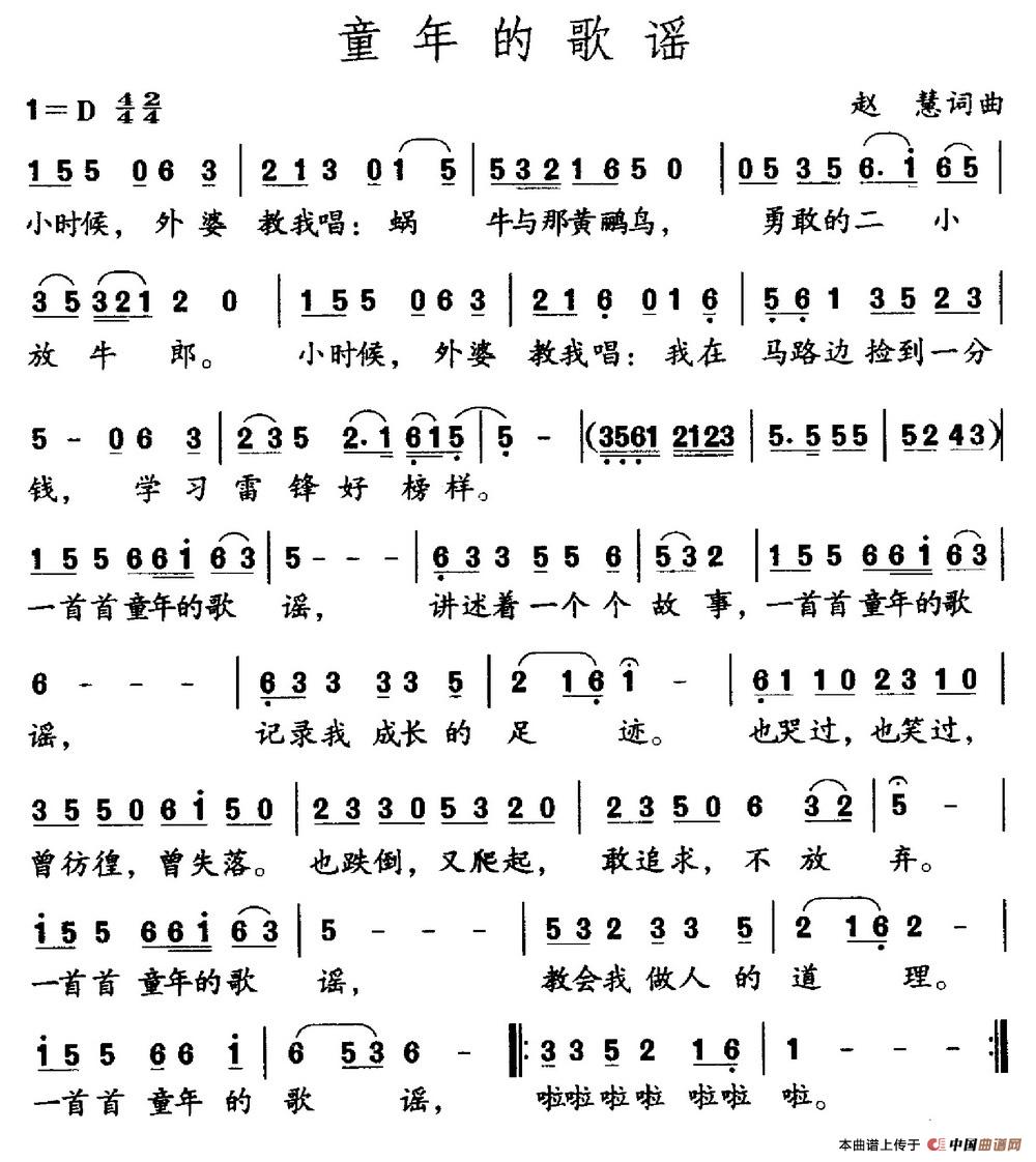 童年的歌谣(赵慧词 赵慧曲)相关五线谱