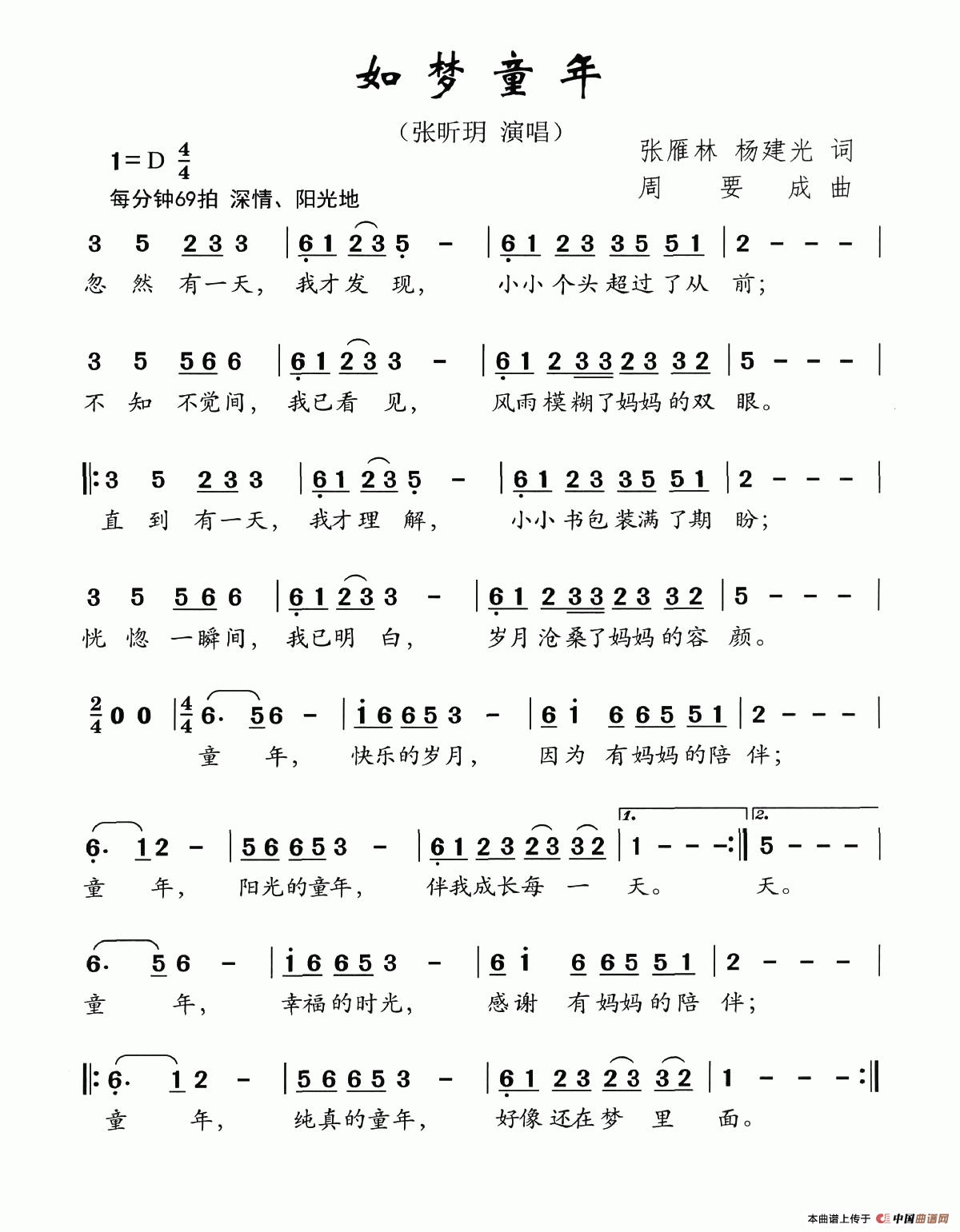 童年在长大(线、简谱混排版)