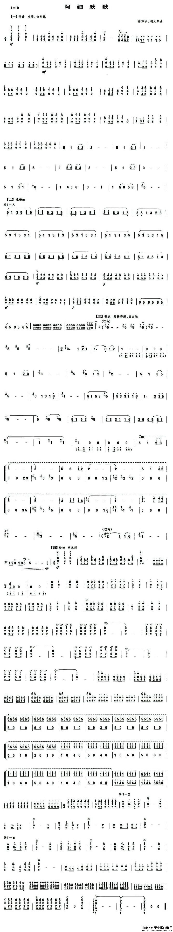 阿细欢歌(笙谱)相关五线谱
