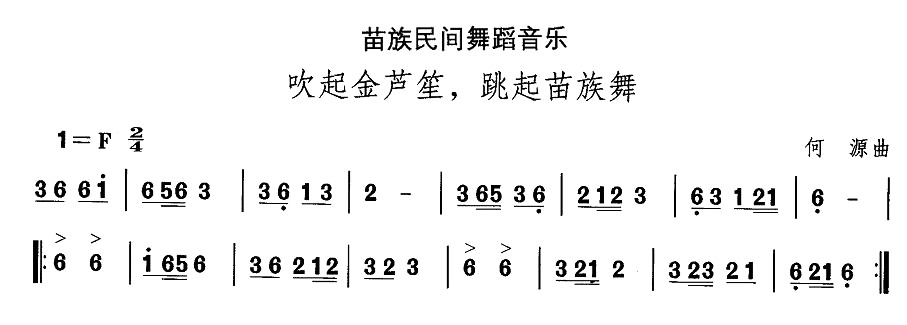 中国民族民间舞曲选(十二)苗族舞蹈:吹起金芦笙,跳起苗族)相关五线谱