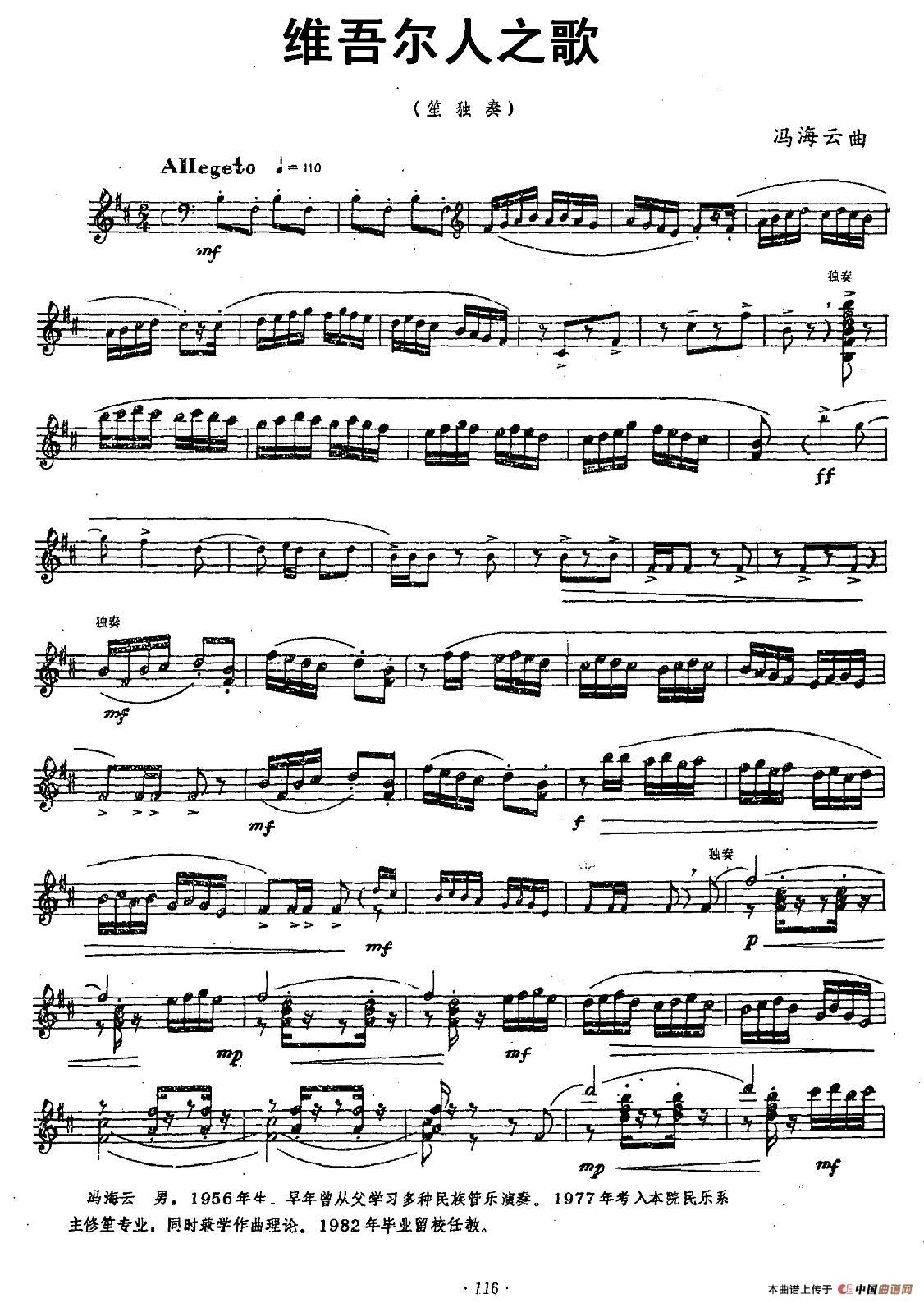 维吾尔人之歌(笙独奏)相关五线谱