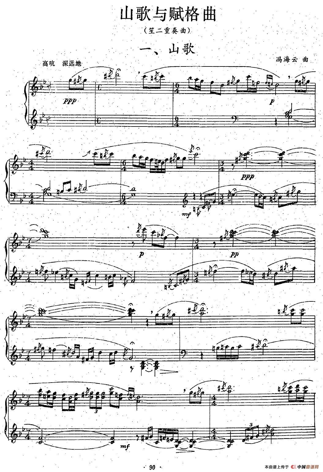 山歌与赋格曲一、山歌(笙二重奏)相关五线谱