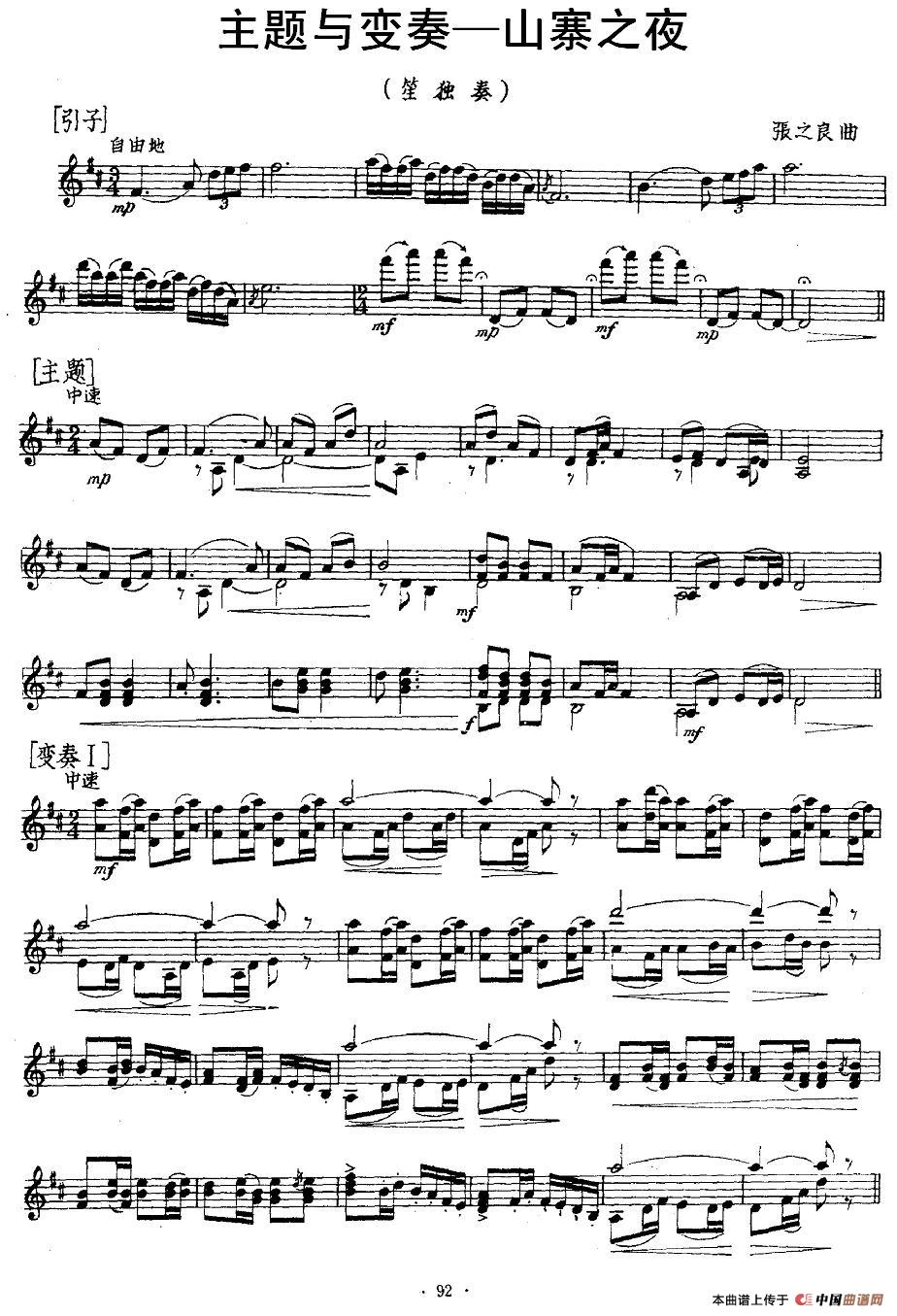 主题与变奏—山寨之夜(笙独奏)相关五线谱