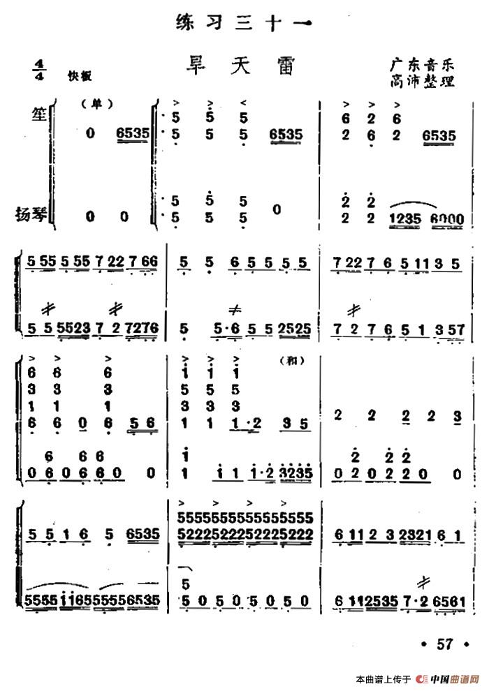 旱天雷(笙独奏+扬琴伴奏)相关五线谱