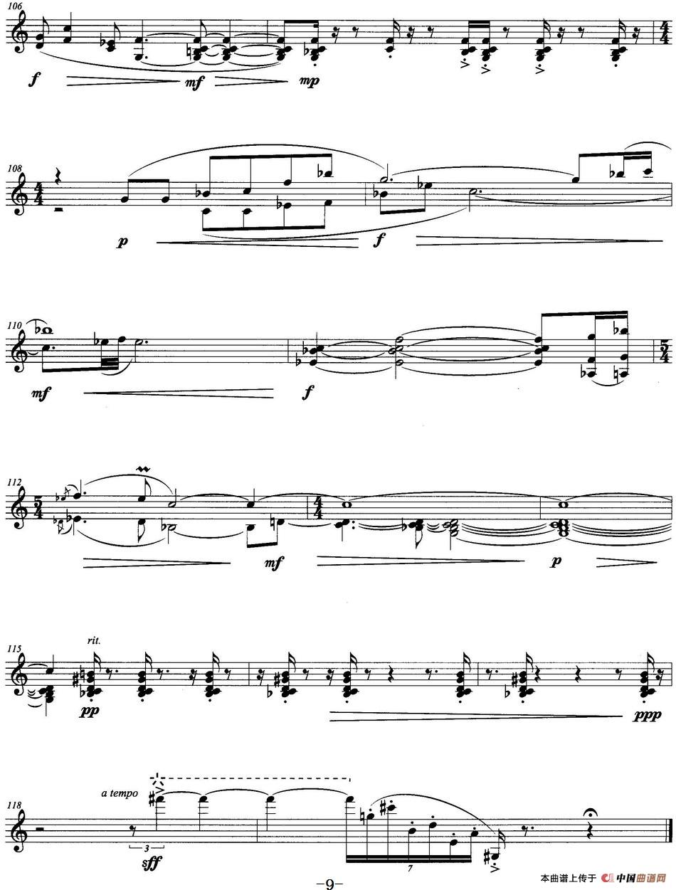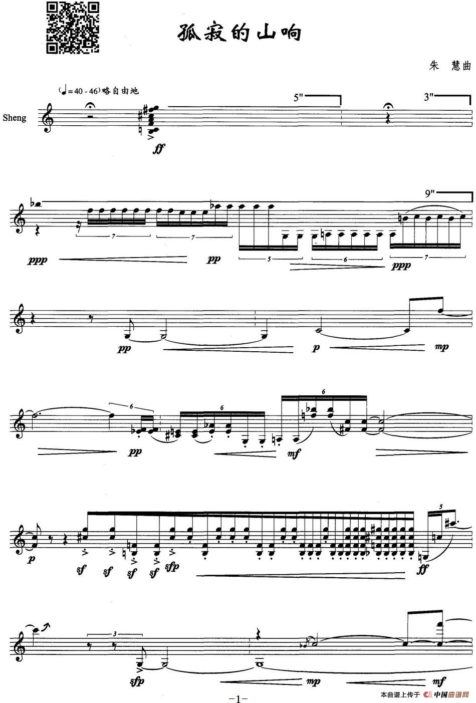 孤寂的山响(笙独奏)相关五线谱