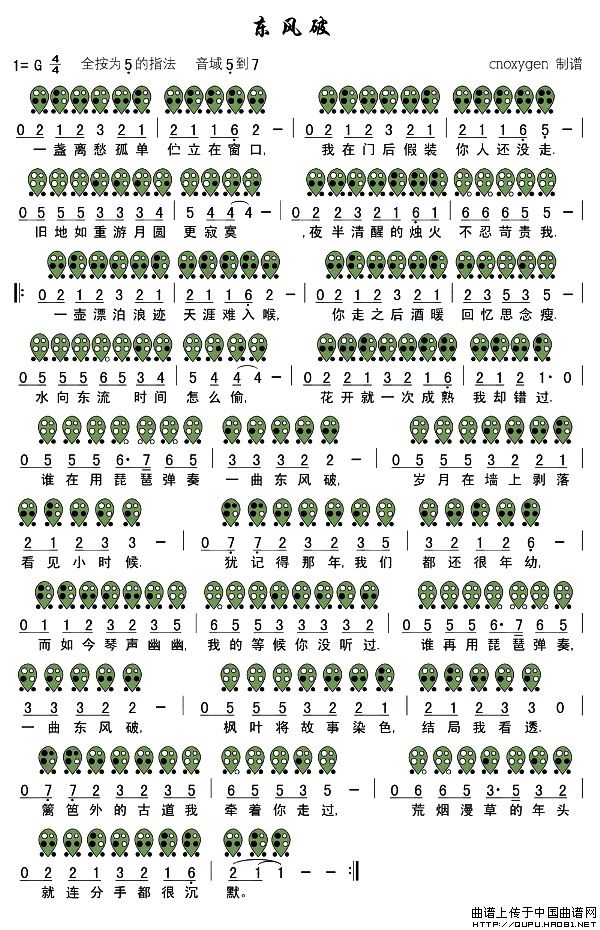 东风破(六孔陶笛谱)