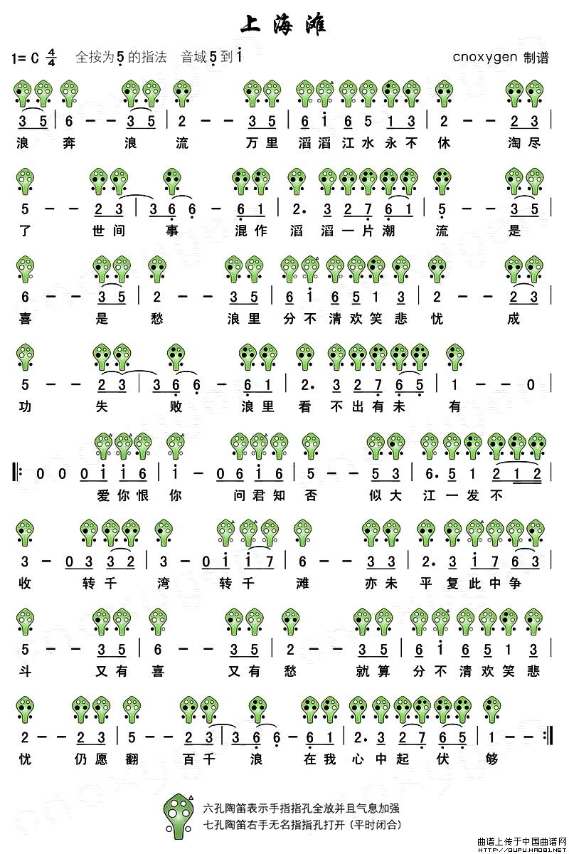 上海滩(六孔陶笛谱)