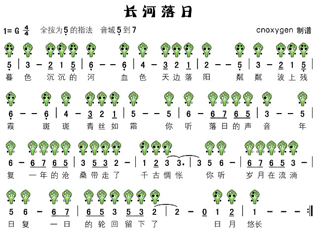 长河落日(六孔陶笛谱)相关五线谱