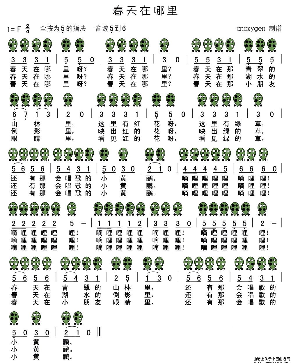 春天在哪里(六孔陶笛谱)
