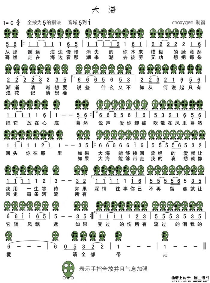 大海(六孔陶笛谱)