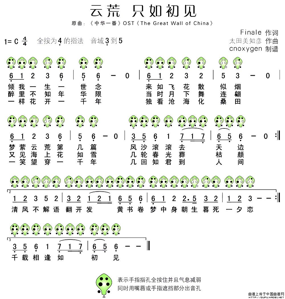 云荒 只如初见(六孔陶笛谱)相关五线谱