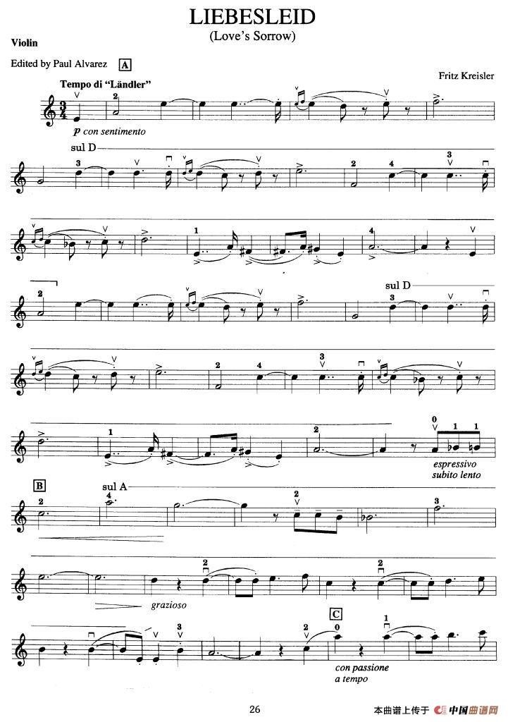 LIEBESLEID(爱的忧伤 爱之悲)相关五线谱