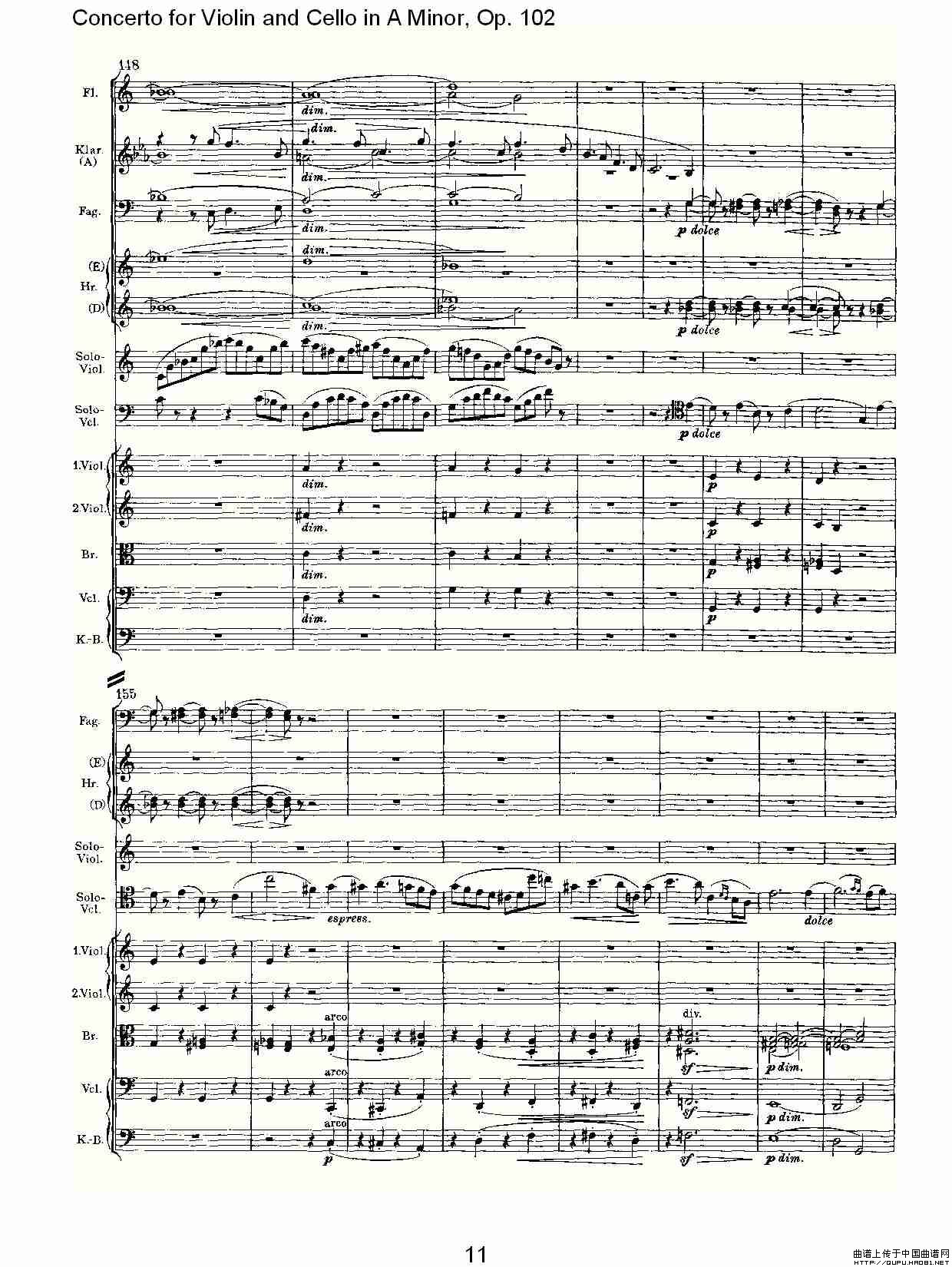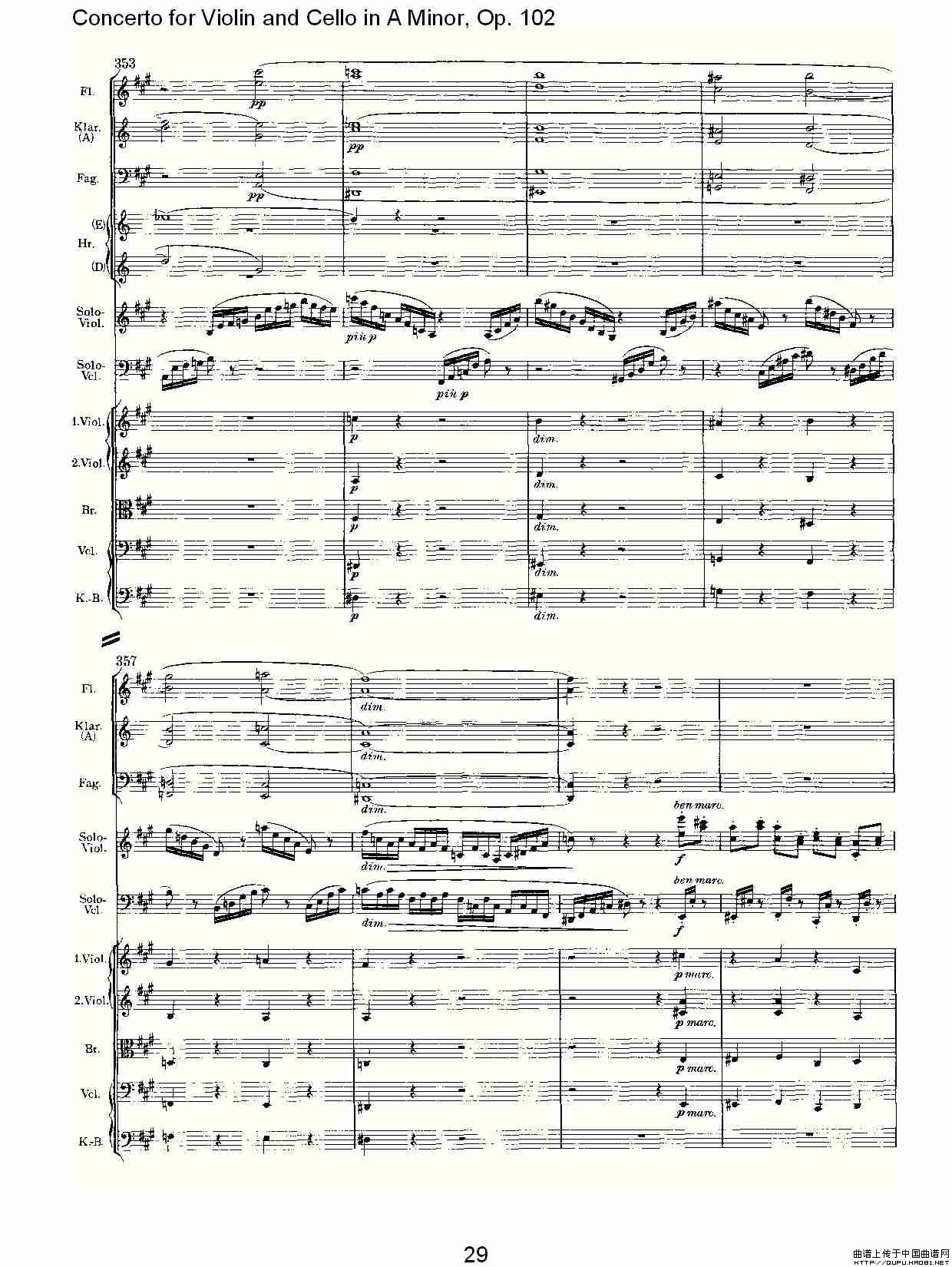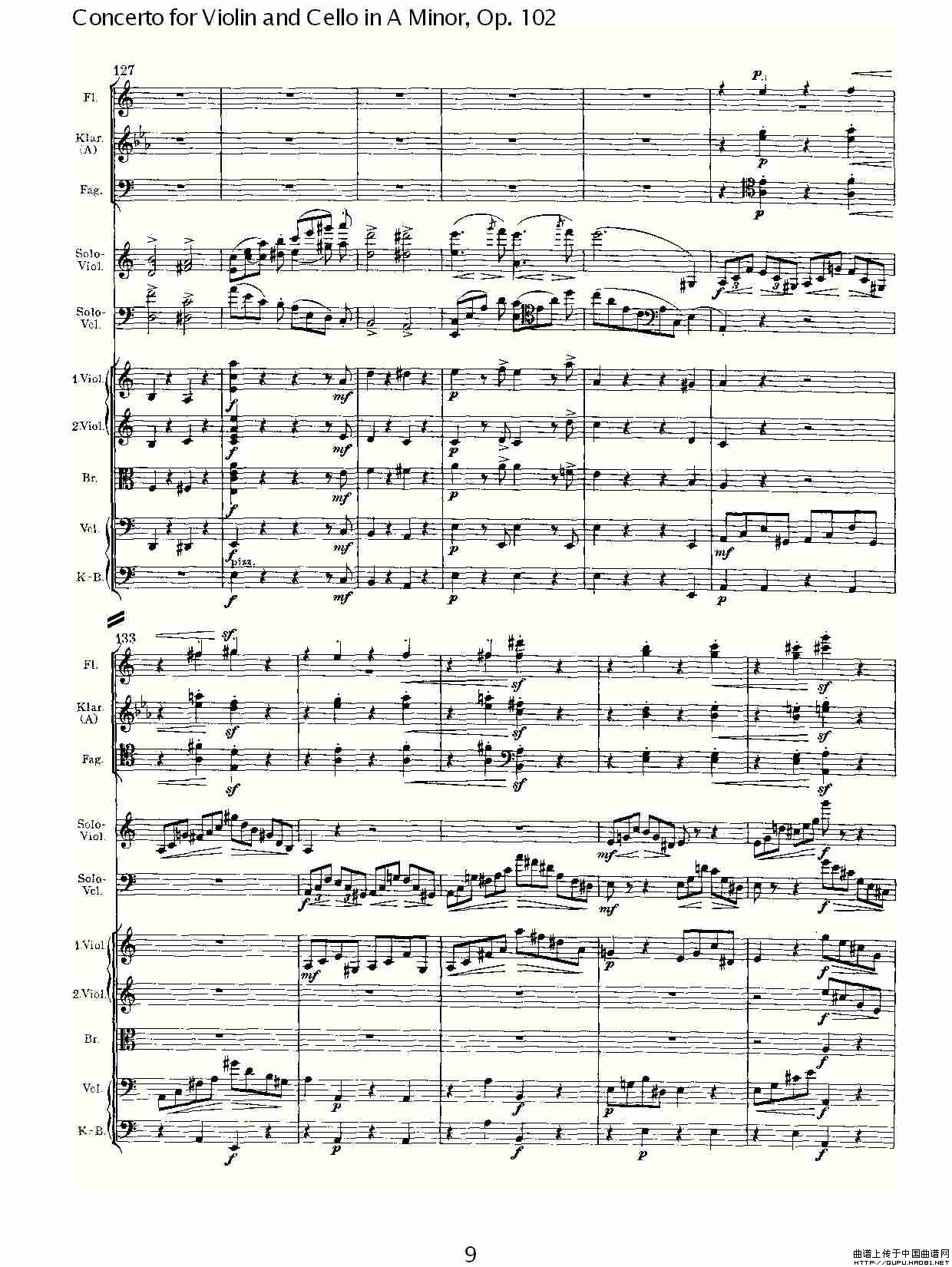 A小调小提琴与大提琴协奏曲, Op.102第一乐章相关五线谱